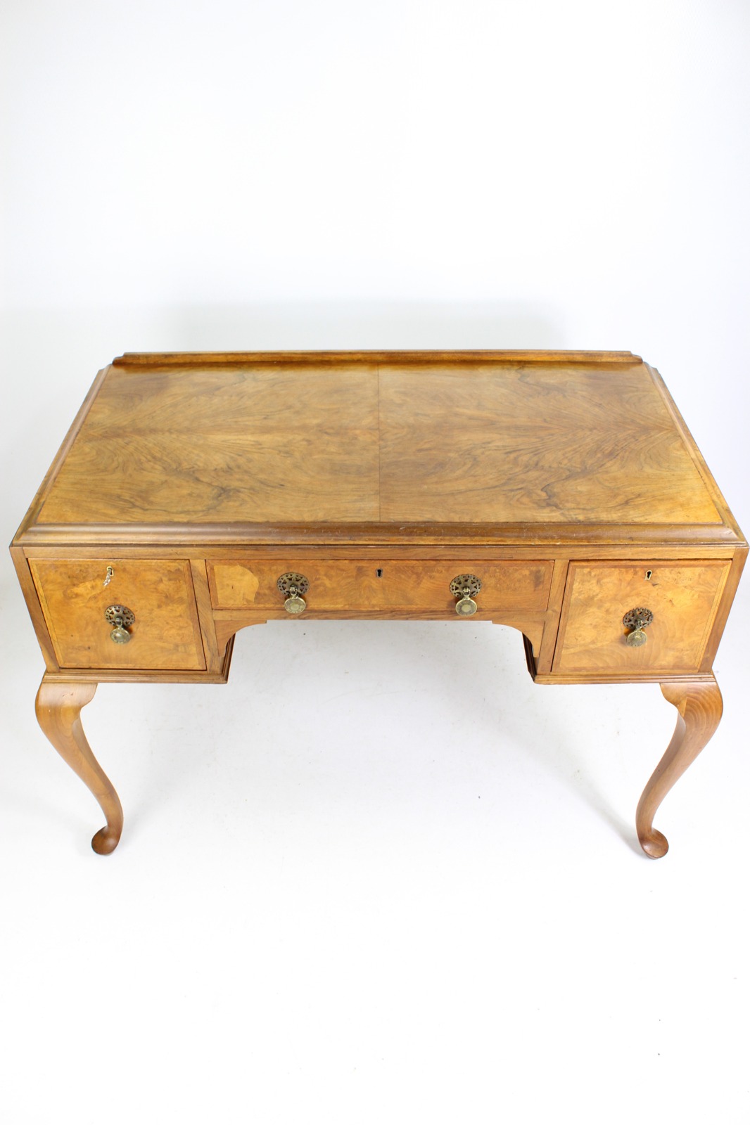 Vintage Walnut Desk On Cabriole Legs with Liberty Label C.1920