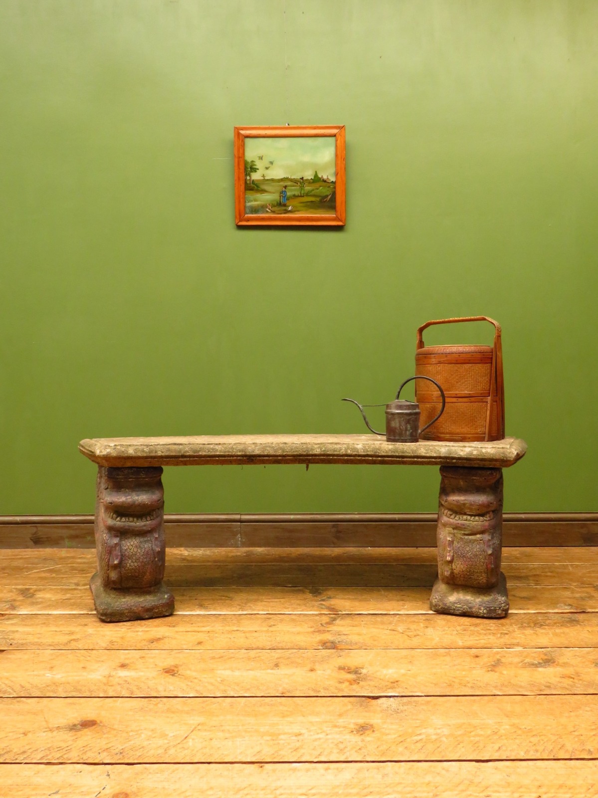 Vintage Weathered Stone Garden Bench, Oriental Dragon Supports 3 Parts