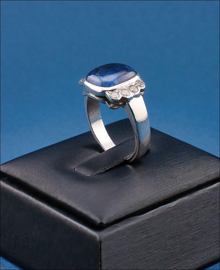 Vintage White 18K Gold Ring with 7.94 Ct. Sapphire and 8 Natural Diamonds