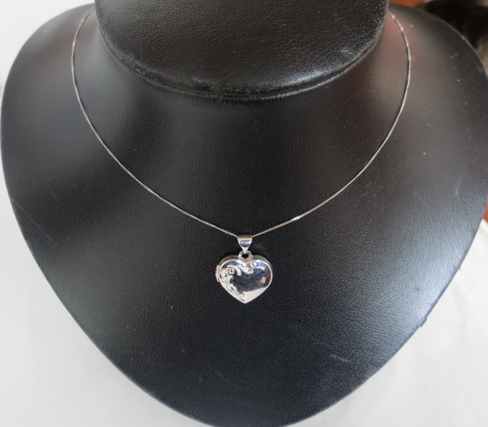Vintage White Gold Heart Locket & Chain - ca 1980 (1 of 11)