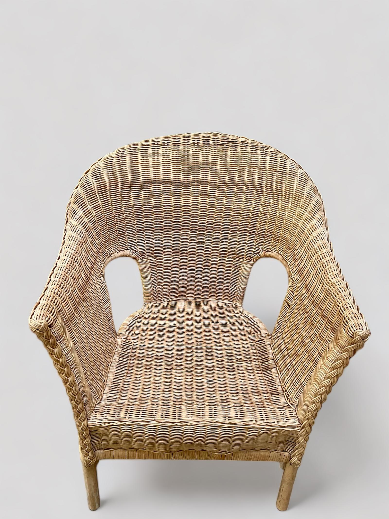 Vintage Wicker Armchair / Lloyd Loom Style / Bamboo Frame