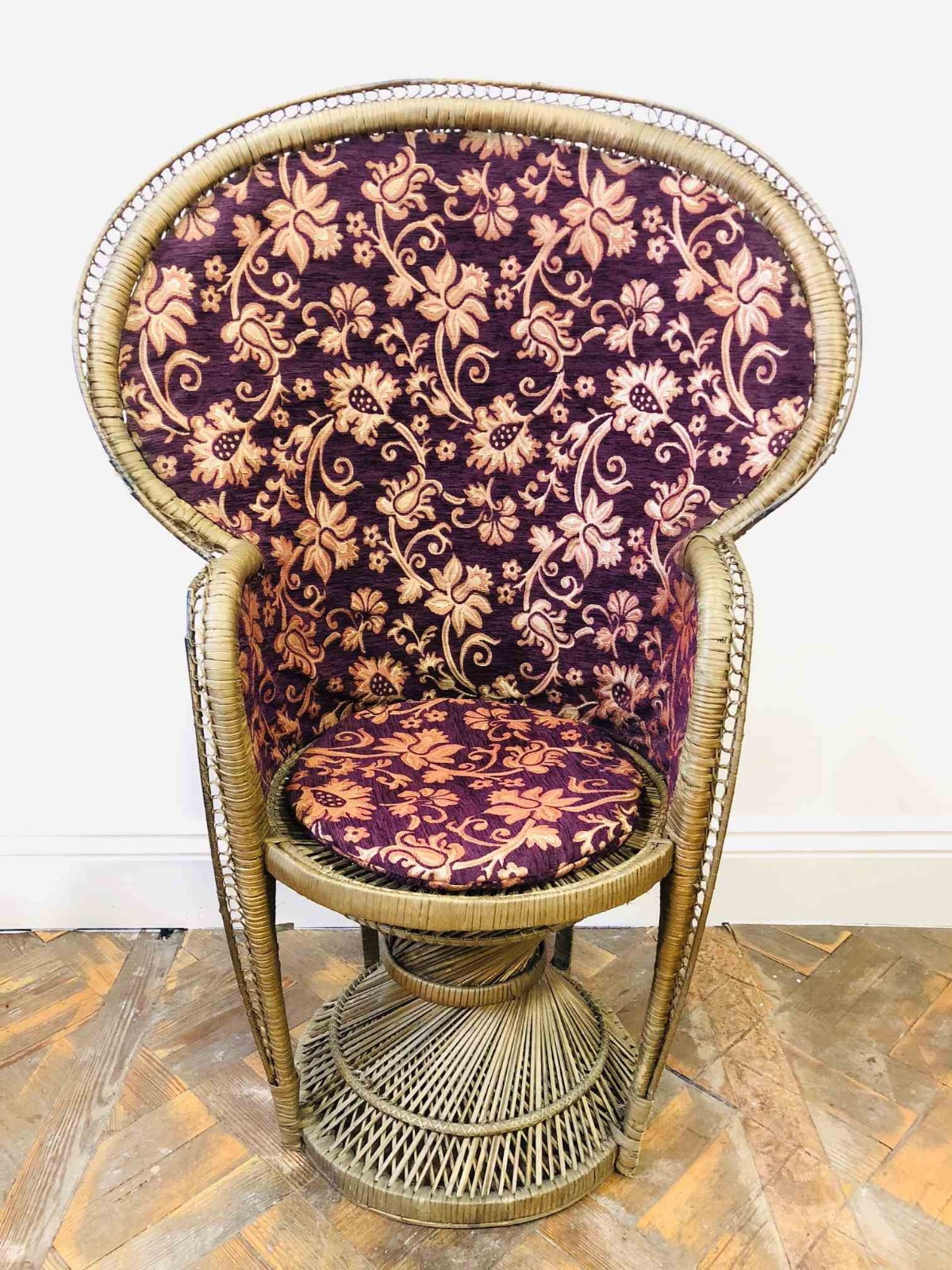 Vintage Wicker Peacock Chair with Floral Fabric