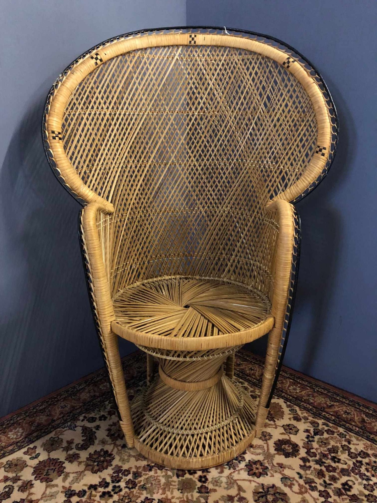 Vintage Wicker Retro Peacock Chair Seat c.1970