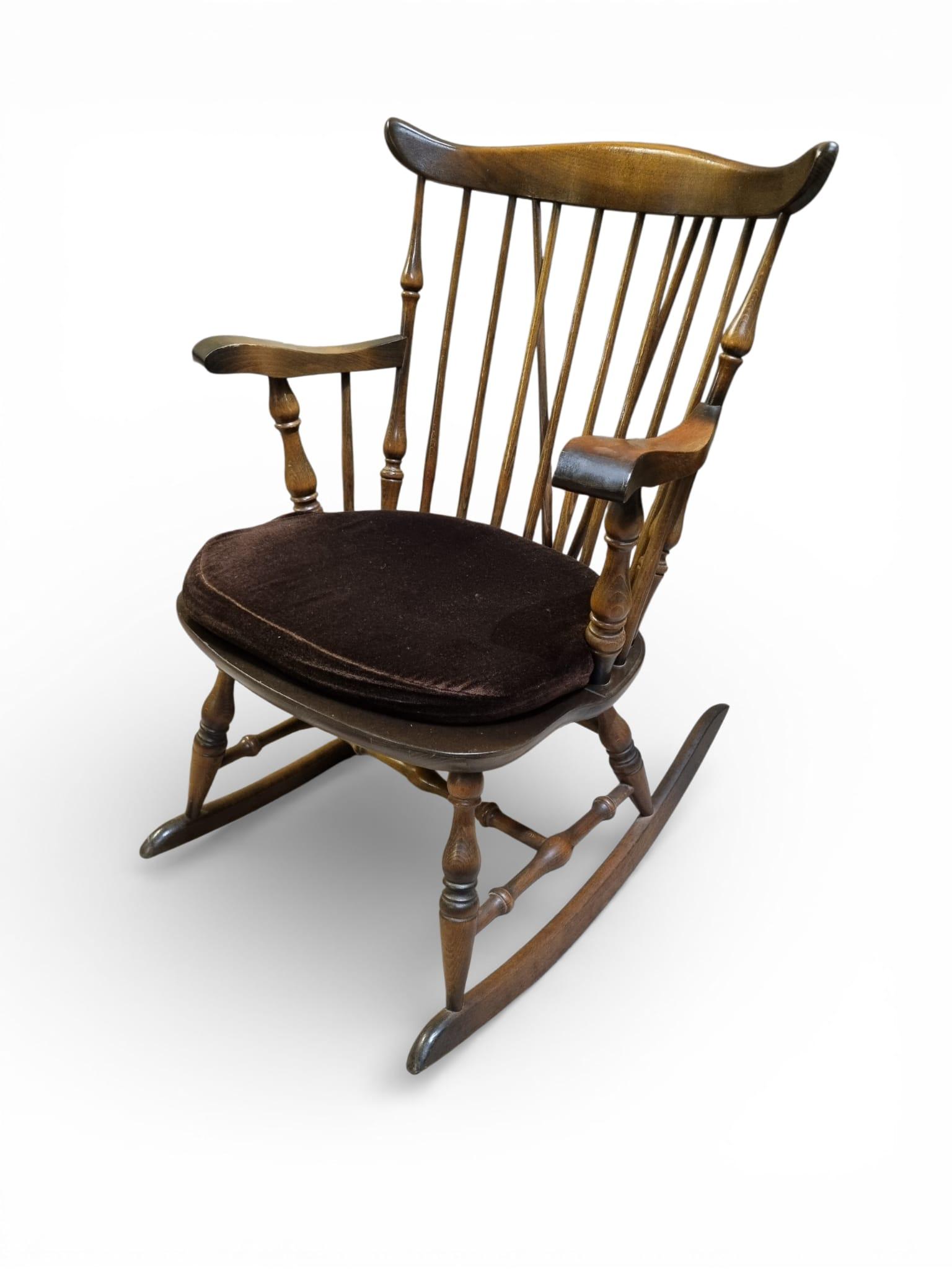 Vintage Windsor Style Rocking Chair / Original Cushion / Solid Wood / c.1960