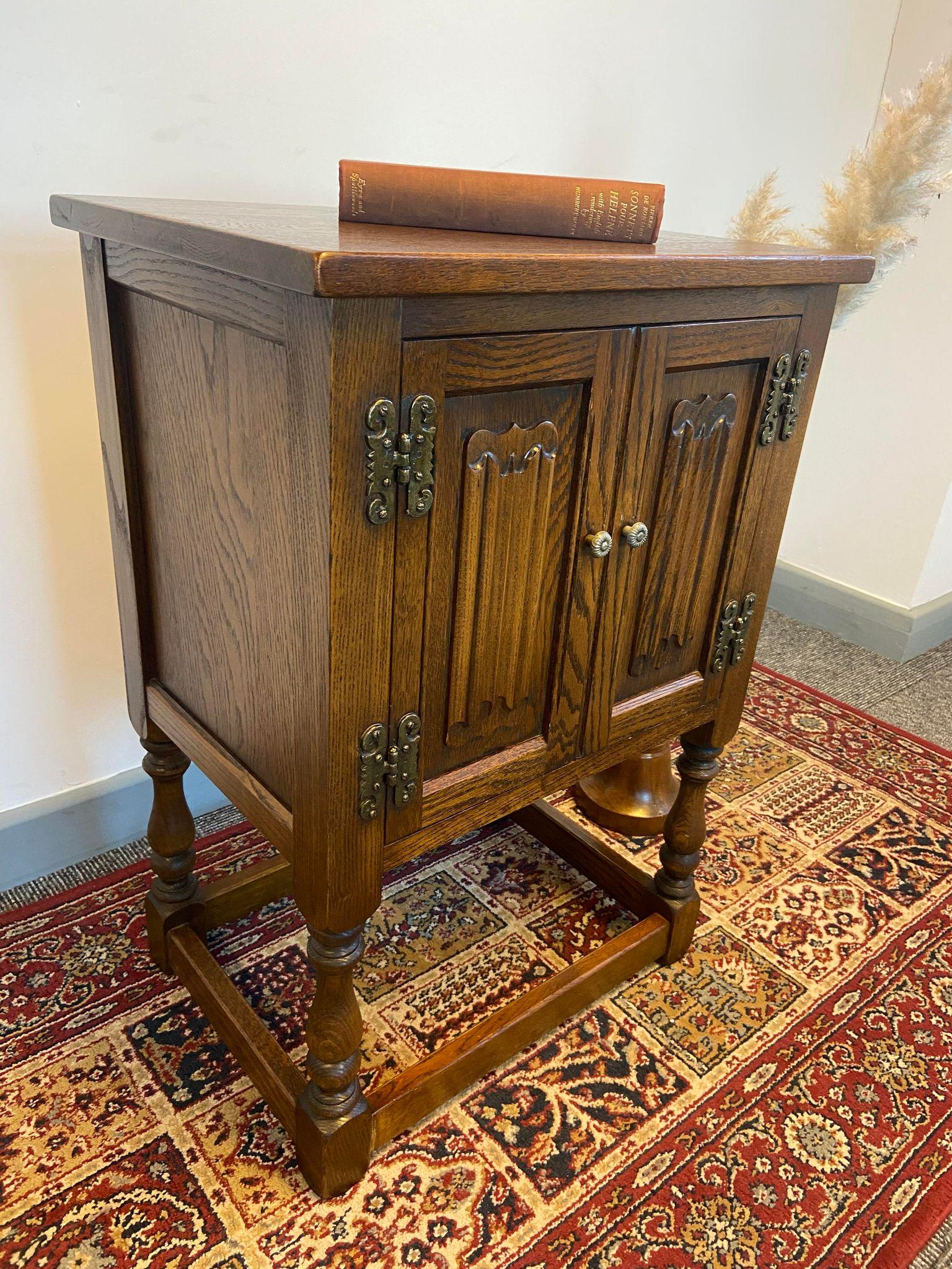 Vintage Wood Bros Old Charm / Small Bedside Cabinet / Light Oak / Made in England 1970s