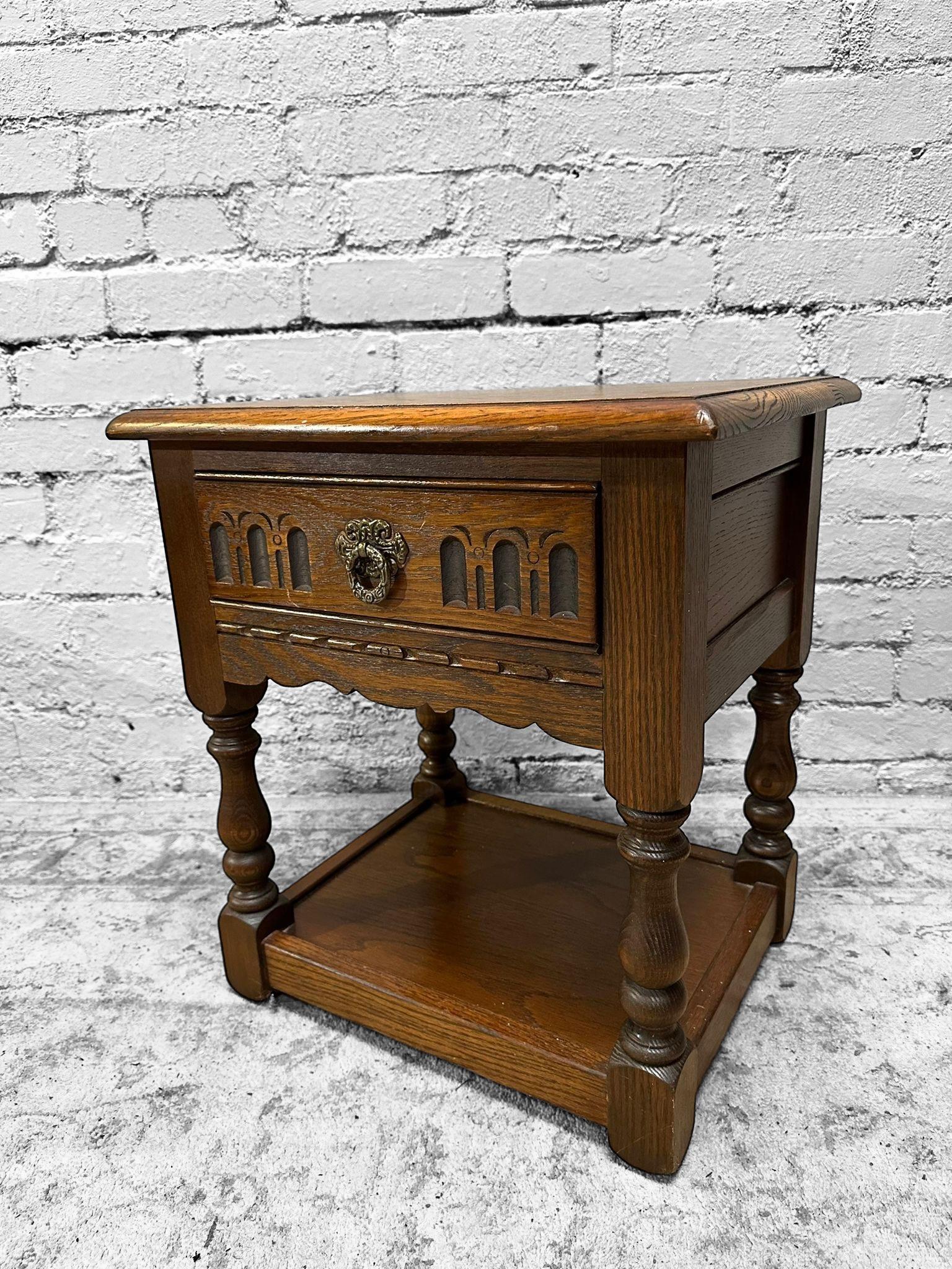 Vintage Wood Bros Old Charm / Small Bedside Lamp Table / Tudor Brown c.1970
