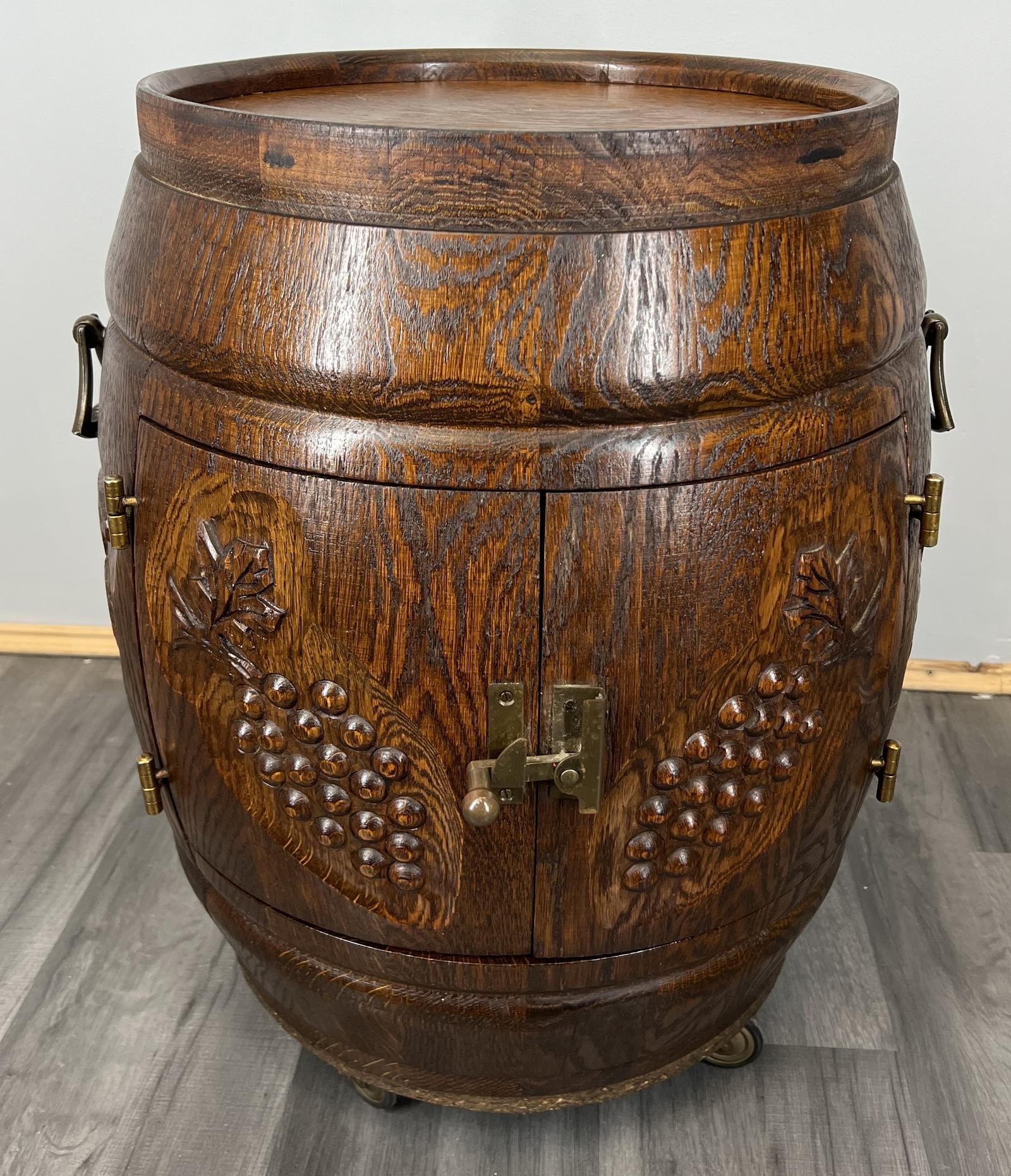 Vintage Wooden Barrel Drinks Cabinet – Rustic Liquor Storage / Home Bar