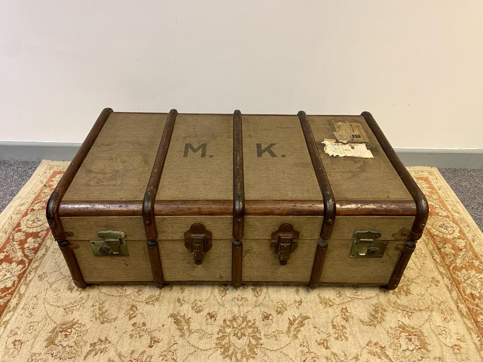Vintage Wooden Bound Steamer Large Trunk - Made in England by WM Parks c.1950