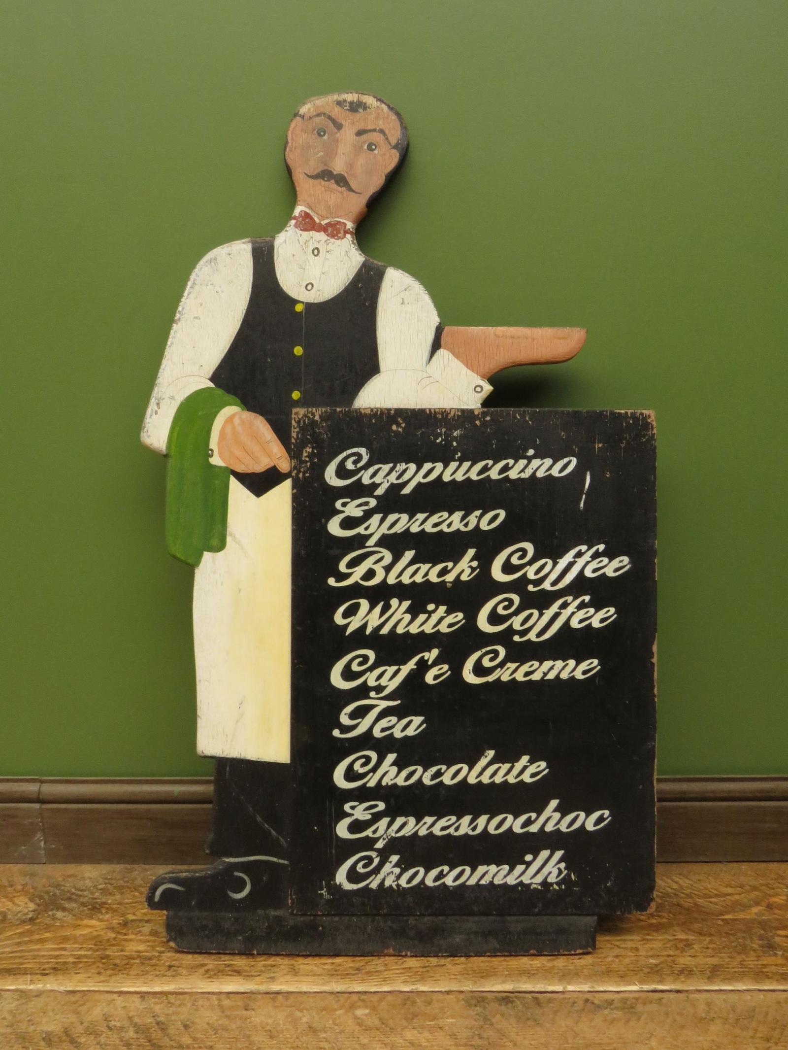 Vintage Wooden French Waiter Cafe Drinks Menu Sign with Black Board