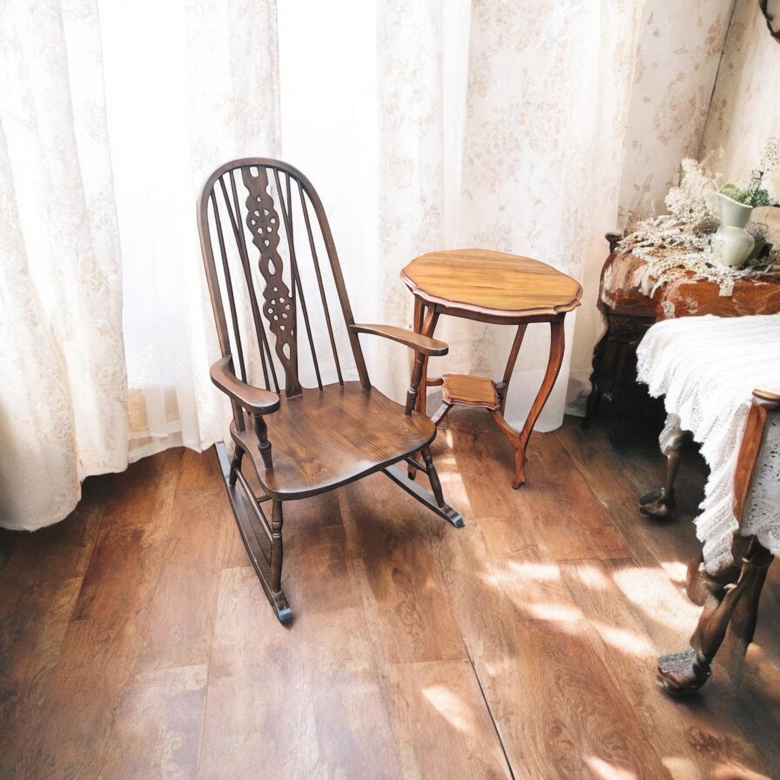 Vintage Wooden Oak Rocking Chair – Wheelback Windsor Style – c.1970
