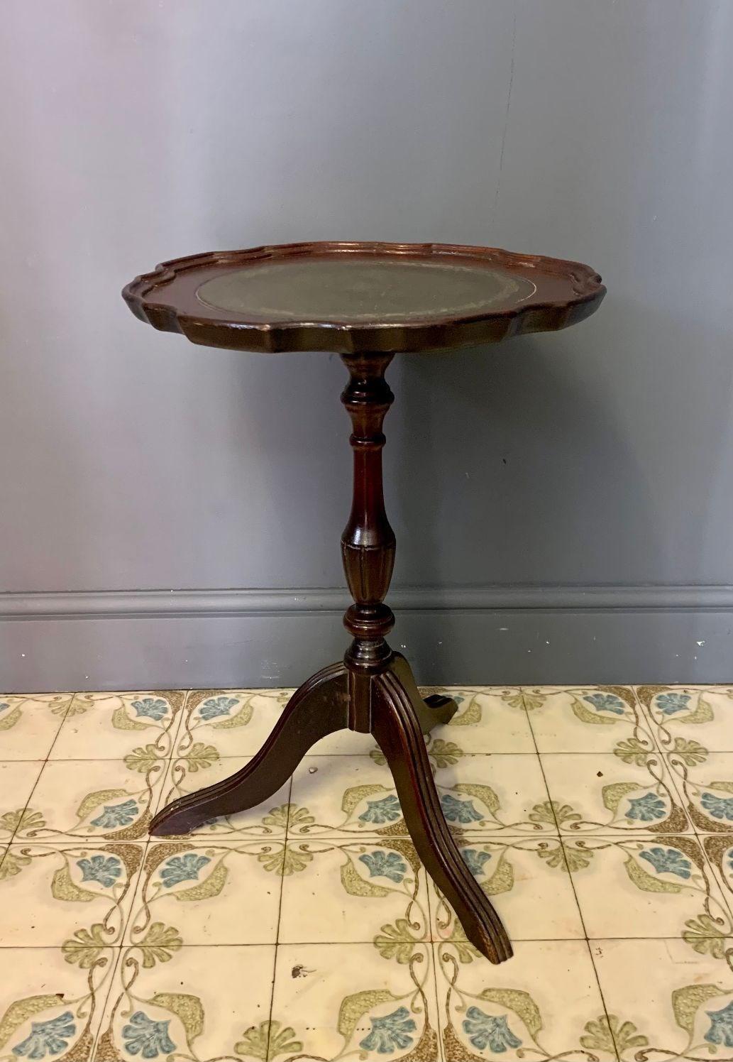 Vintage Wooden Wine Table With Green Inlaid Top / 5