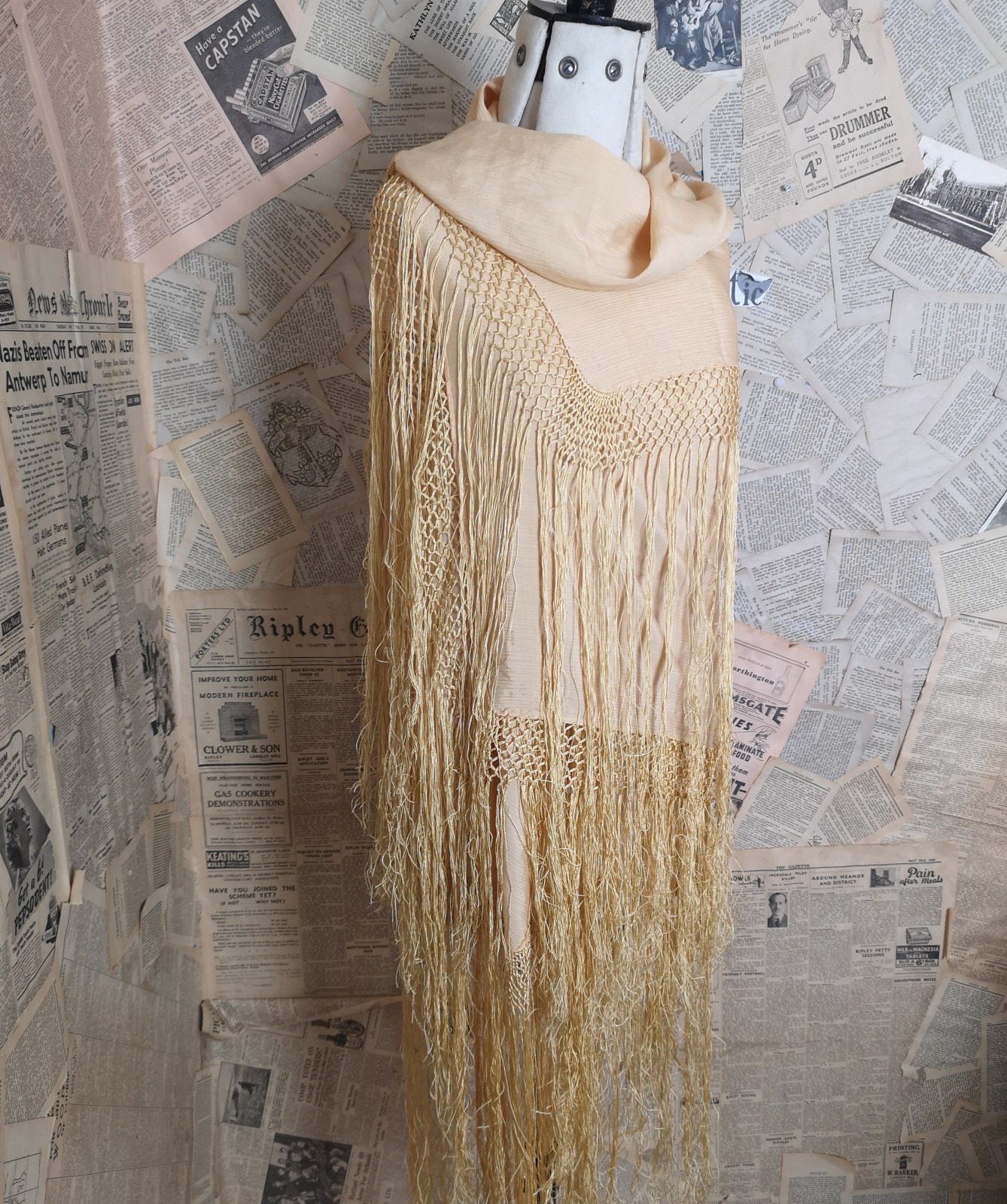Vintage Yellow Crepe Silk Shawl, 1920'S Art Deco
