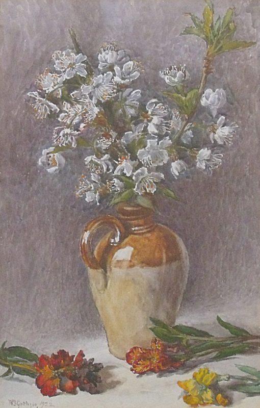 W D Guthrie Still Life Original Watercolour Painting - Flowers & Stoneware Vase