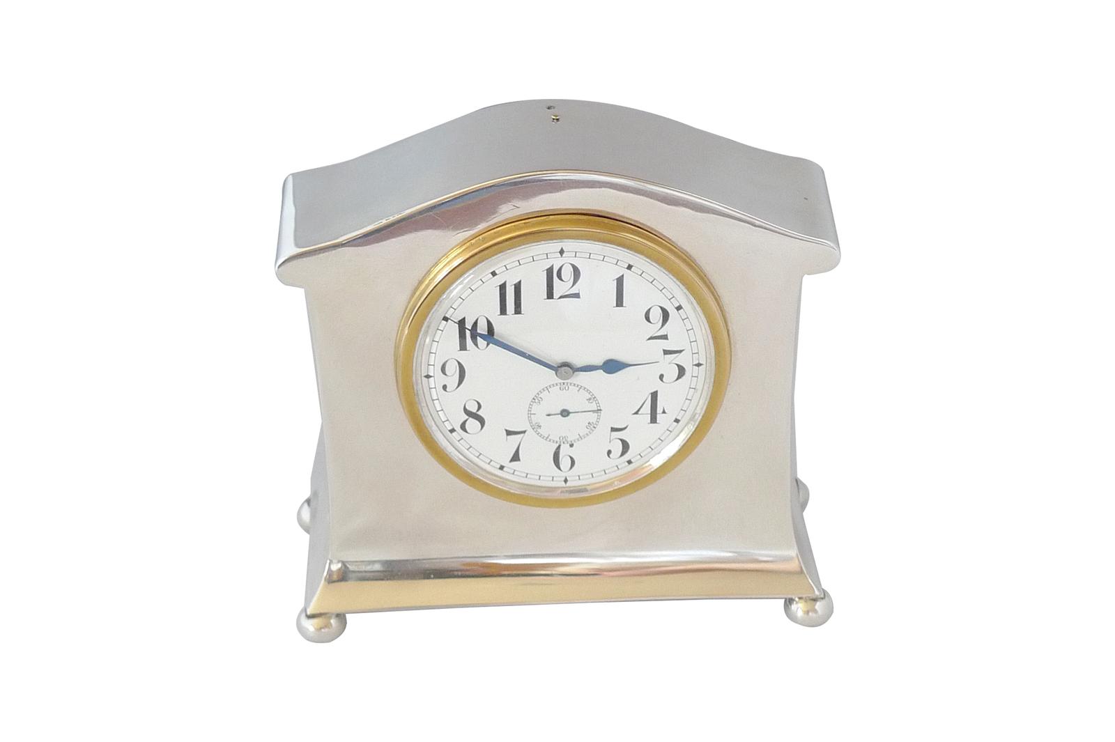 Walker & Hall Desk Clock with Enamel Dial Hallmarked for Silver Chester