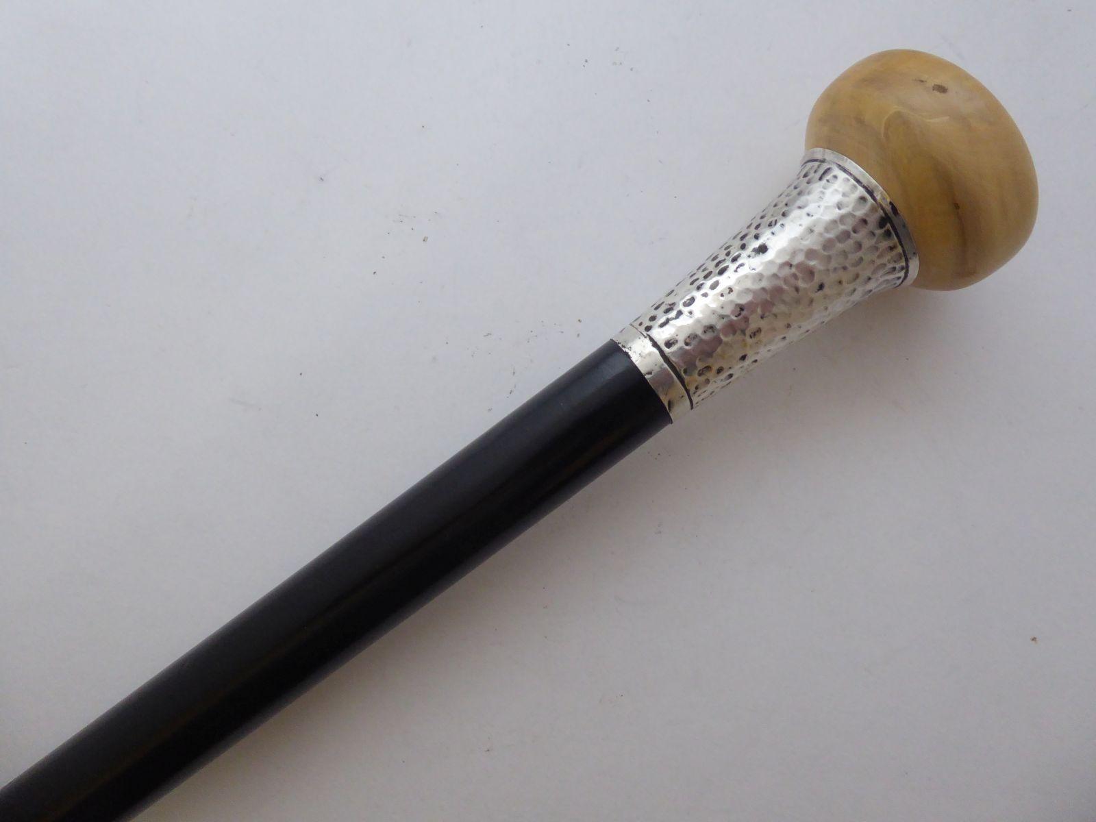 Walking Stick 1919 Hallmarked Solid Silver Collar Ebony Shaft Boxwood Pommel
