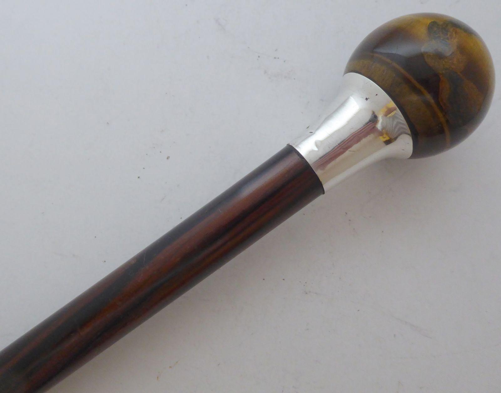 Walking Stick 1923 Hallmarked Silver Collar Coromandel Shaft Tigers Eye Top