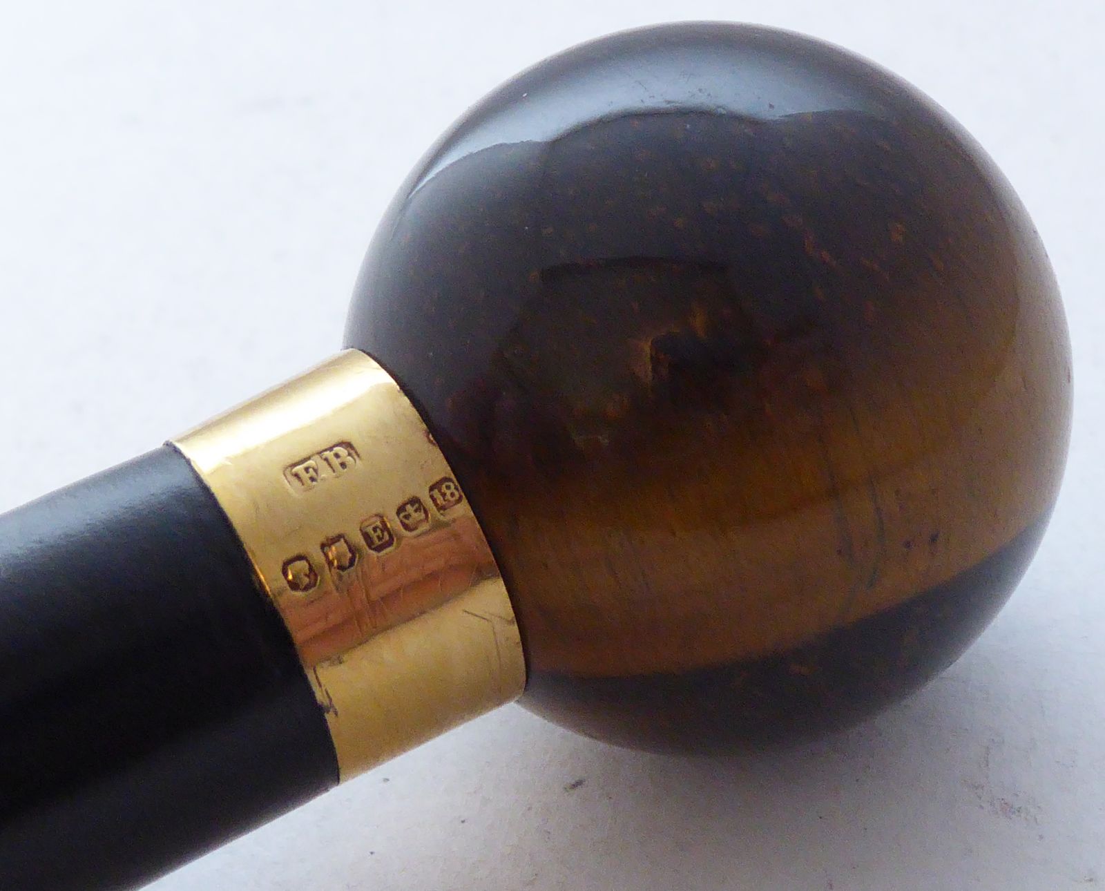 Walking Stick Cane 1880 Hallmarked 18ct Gold Collar Ebony Tigers Eye