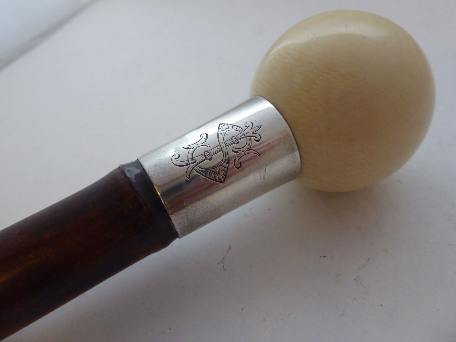 Walking Stick Cane 1886 Hallmarked Solid Silver Tagua Nut Pommel Bamboo Shaft