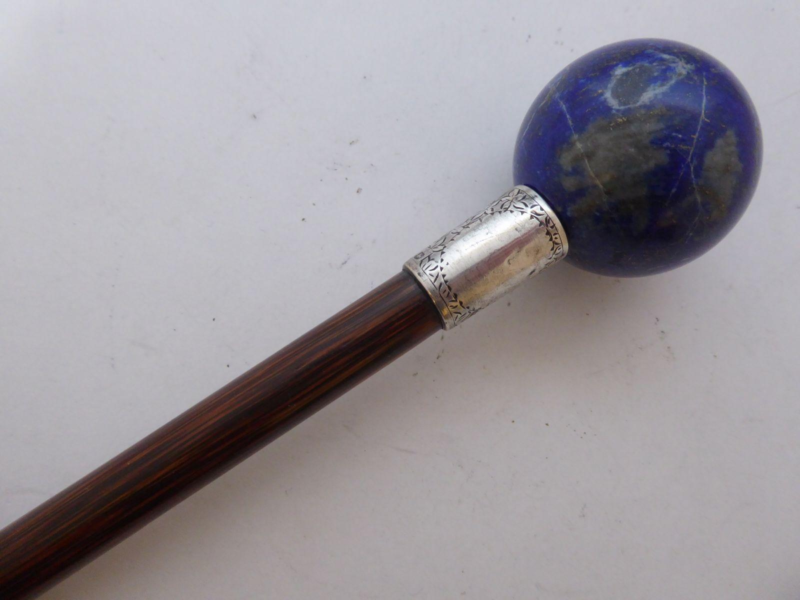 Walking Stick Cane 1898 Hallmarked Solid Silver Collar Partridge Shaft Lapis Top
