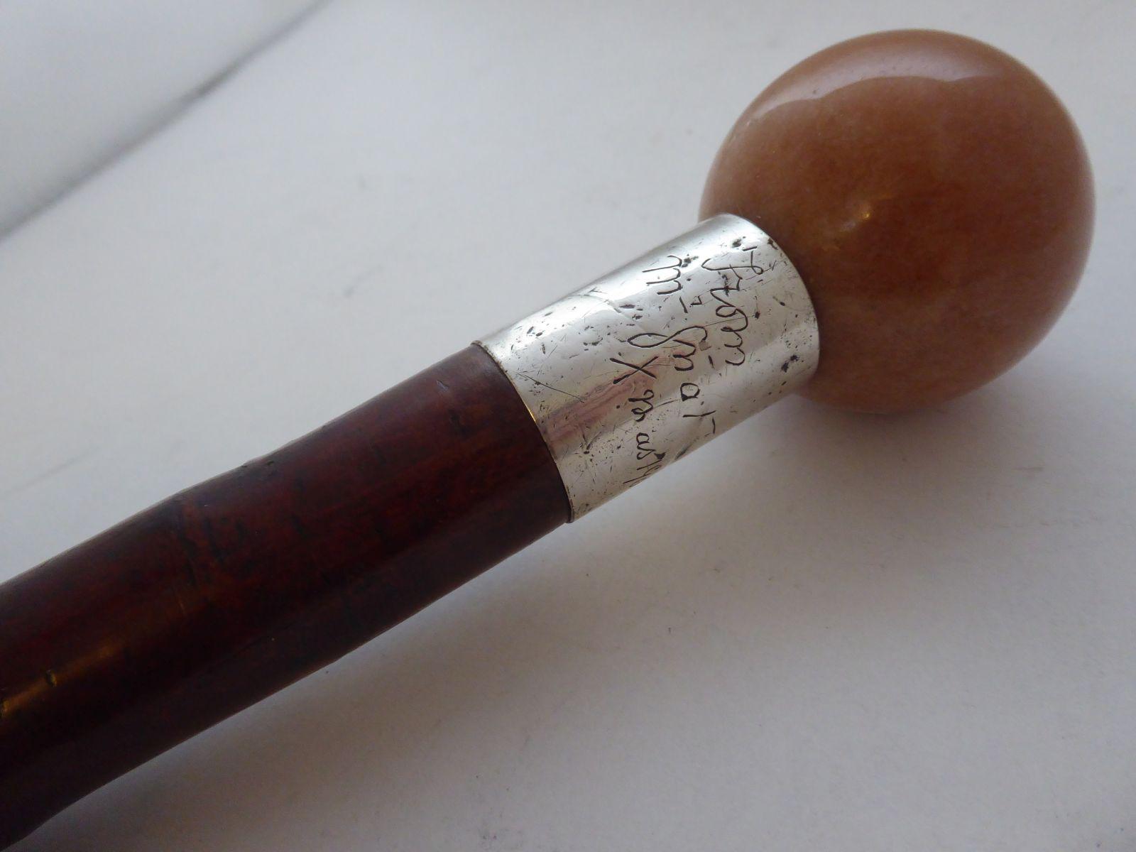 Walking Stick Cane 1901 Hallmarked Silver Pommel Blackthorn Shaft Carnelian Top