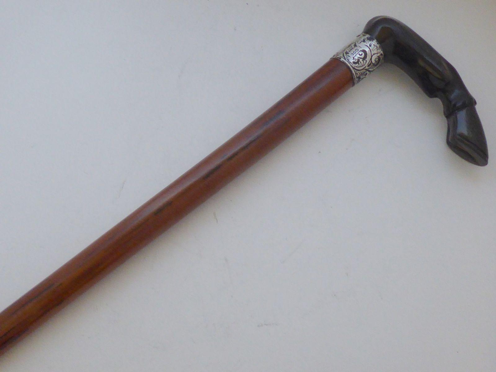 Walking Stick Cane 1901 Hallmarked Solid Silver Collar Horse Hoof Pommel Malacca