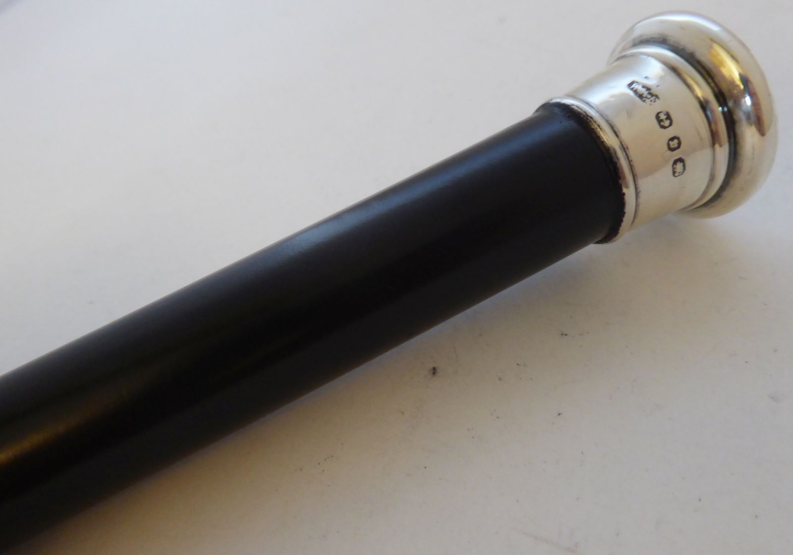 Walking Stick Cane 1901 Hallmarked Solid Silver Pommel Ebonised Wood Shaft
