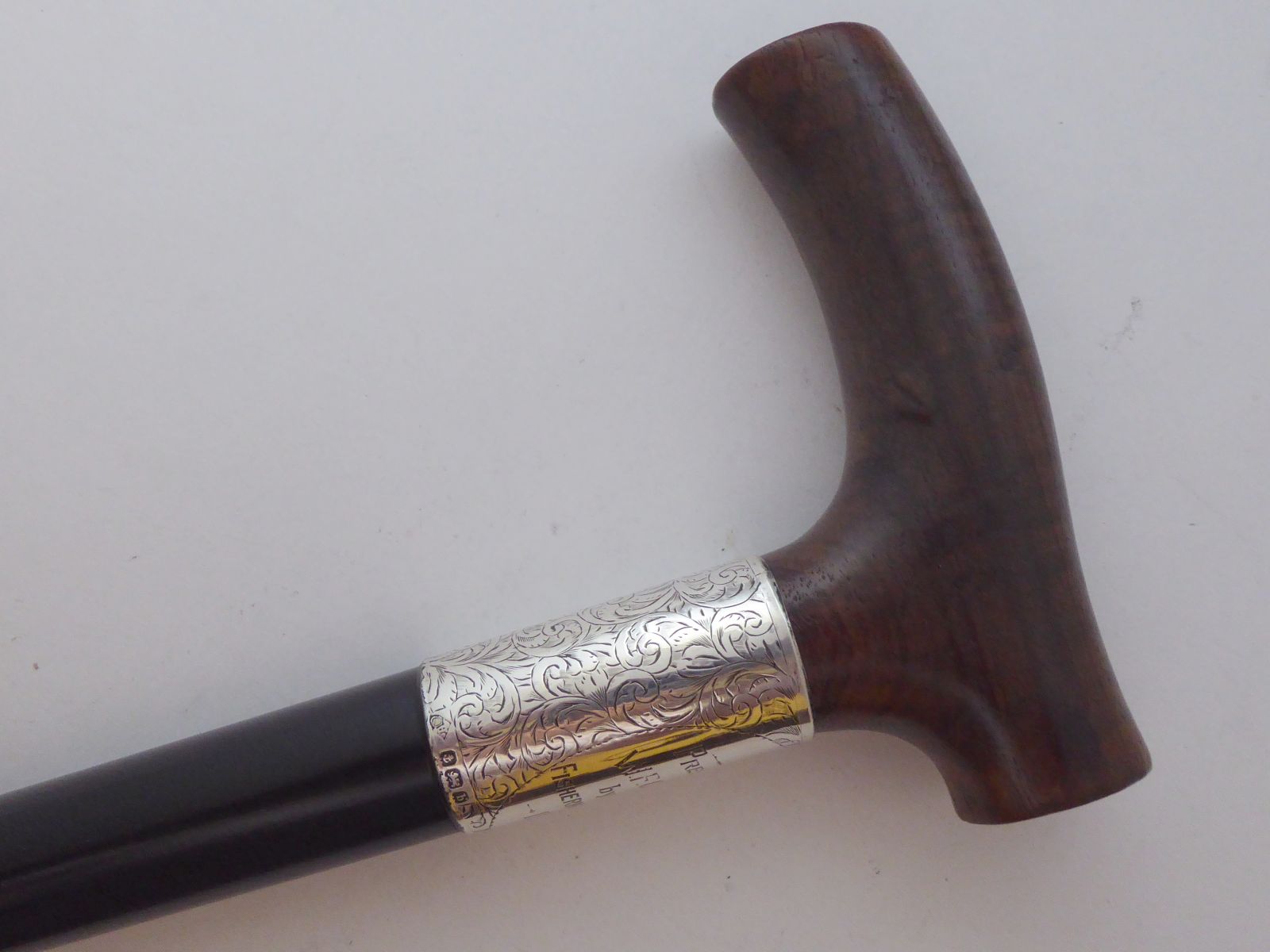 Walking Stick Cane 1901 Hallmarked Solid Silver Pommel Tigerwood Shaft Fishing Interest