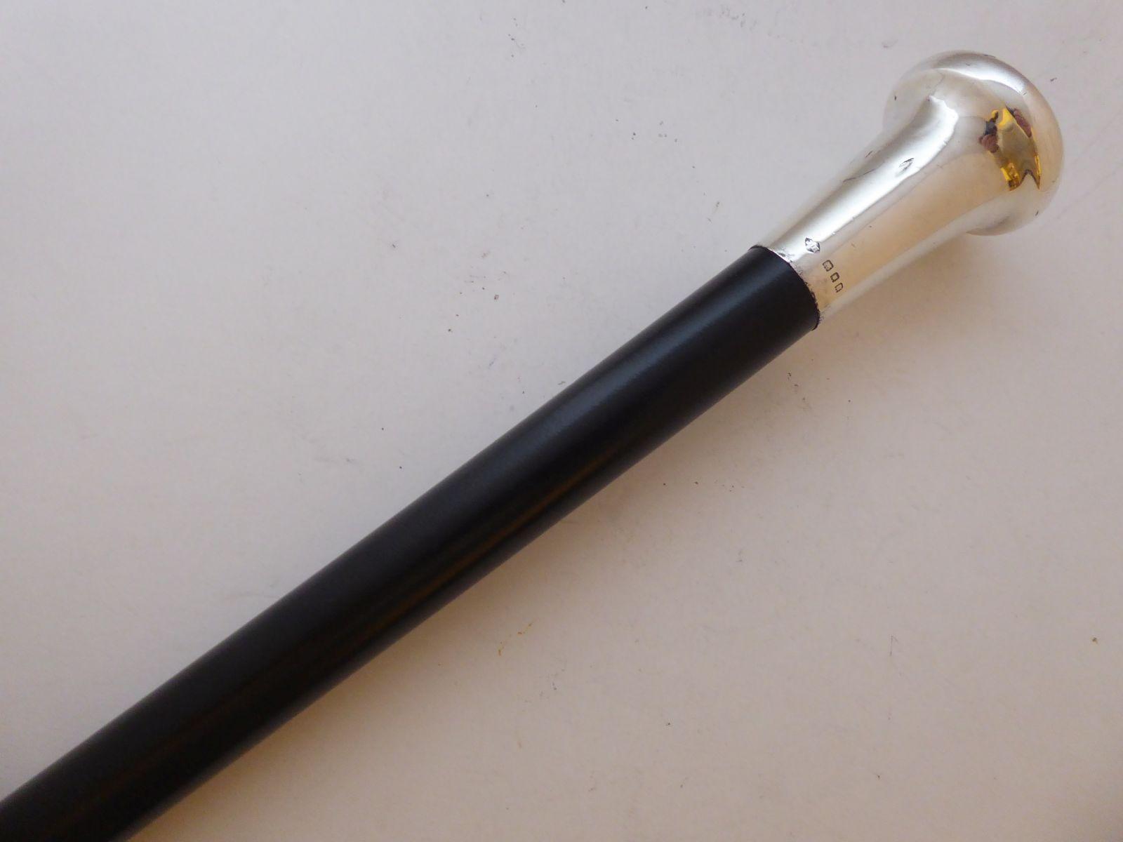 Walking Stick Cane 1902 Hallmarked Solid Silver Pommel Ebony Shaft J Howell & Co