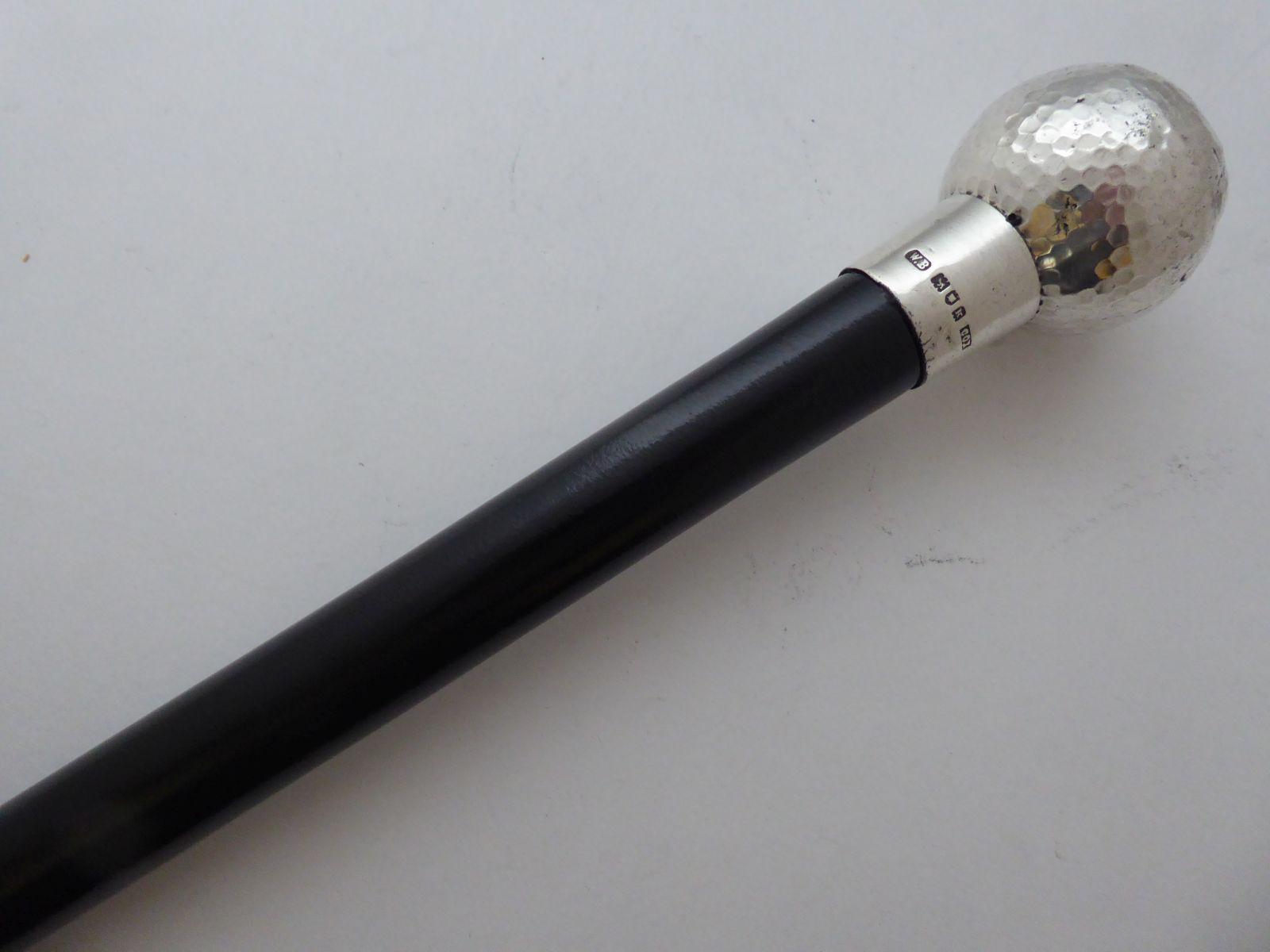 Walking Stick Cane 1905 Hallmarked Solid Silver Golf Ball Pommel Ebony Shaft