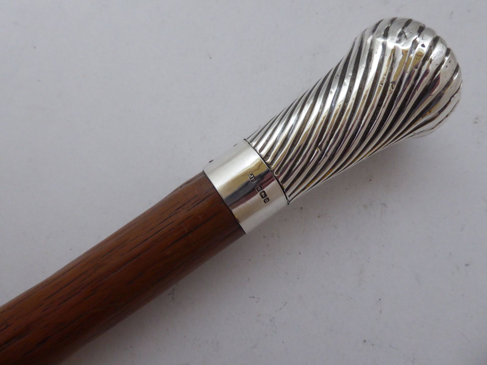 Walking Stick Cane 1905 Hallmarked Solid Silver Pommel Chestnut Wood Shaft