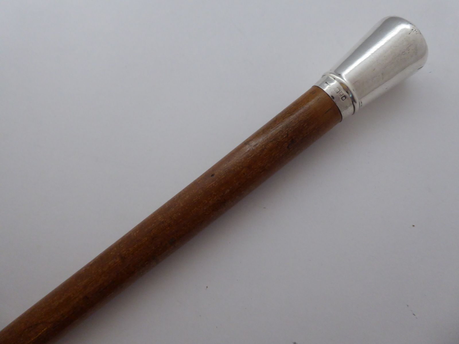 Walking Stick Cane 1908 Hallmarked Solid Silver Pommel Malacca Wood Shaft