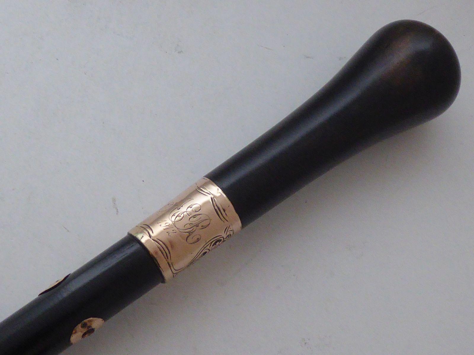 Walking Stick Cane 1912 Hallmarked 9ct Rose Gold Collar African Ebony Pommel