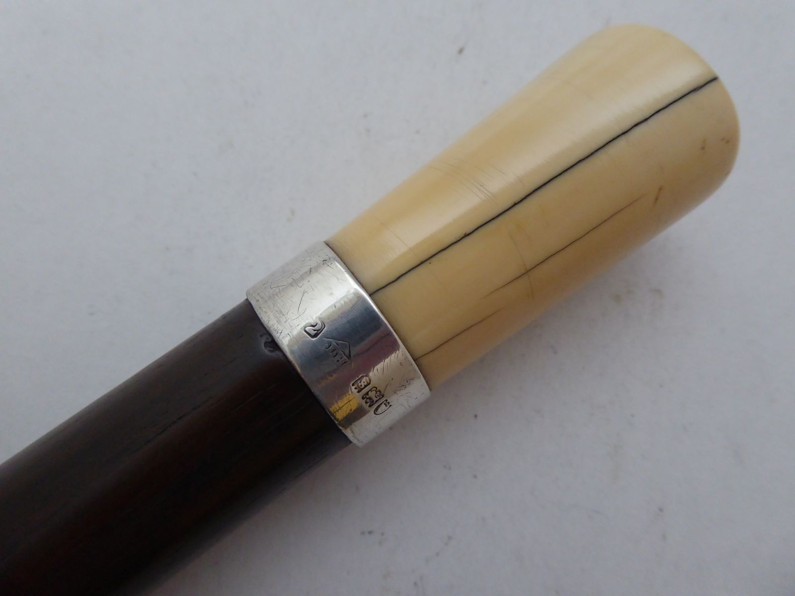 Walking Stick Cane 1913 Hallmarked Solid Silver Pommel Lignum Vitae Shaft