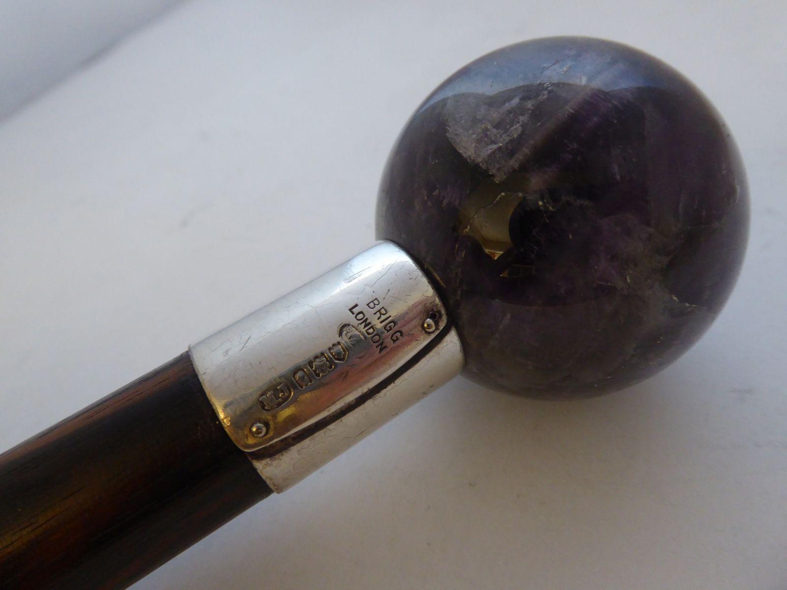 Walking Stick Cane 1914 Hallmarked Silver Collar Coromandel Shaft Amethyst