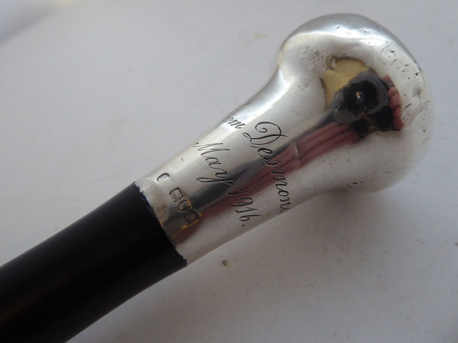 Walking Stick Cane 1915 Hallmarked Solid Silver Pommel Ebonised Shaft Agate Top