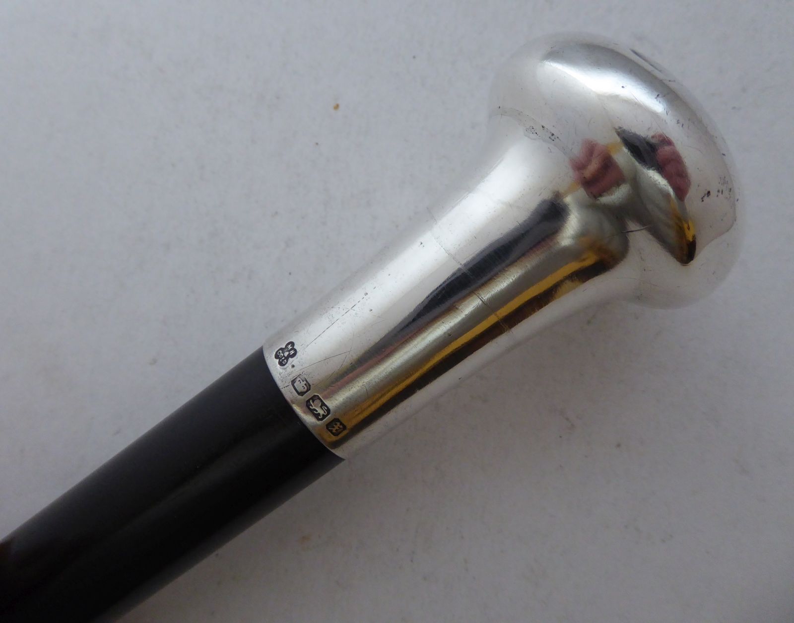 Walking Stick Cane 1915 Hallmarked Solid Silver Pommel Heavy Ebony Wood Shaft
