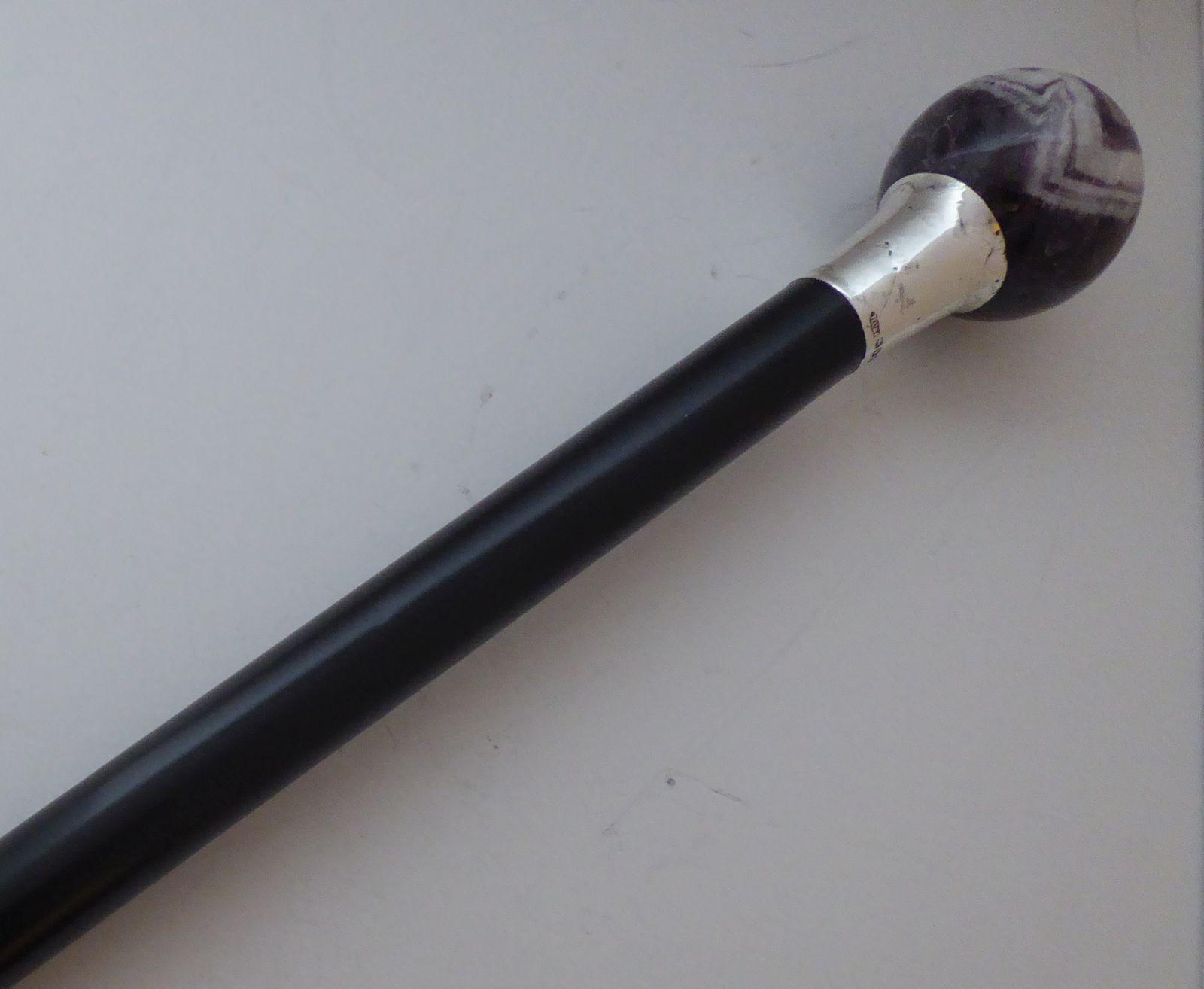 Walking Stick Cane 1916 Hallmarked Solid Silver Collar Ebonised Amethyst Pommel