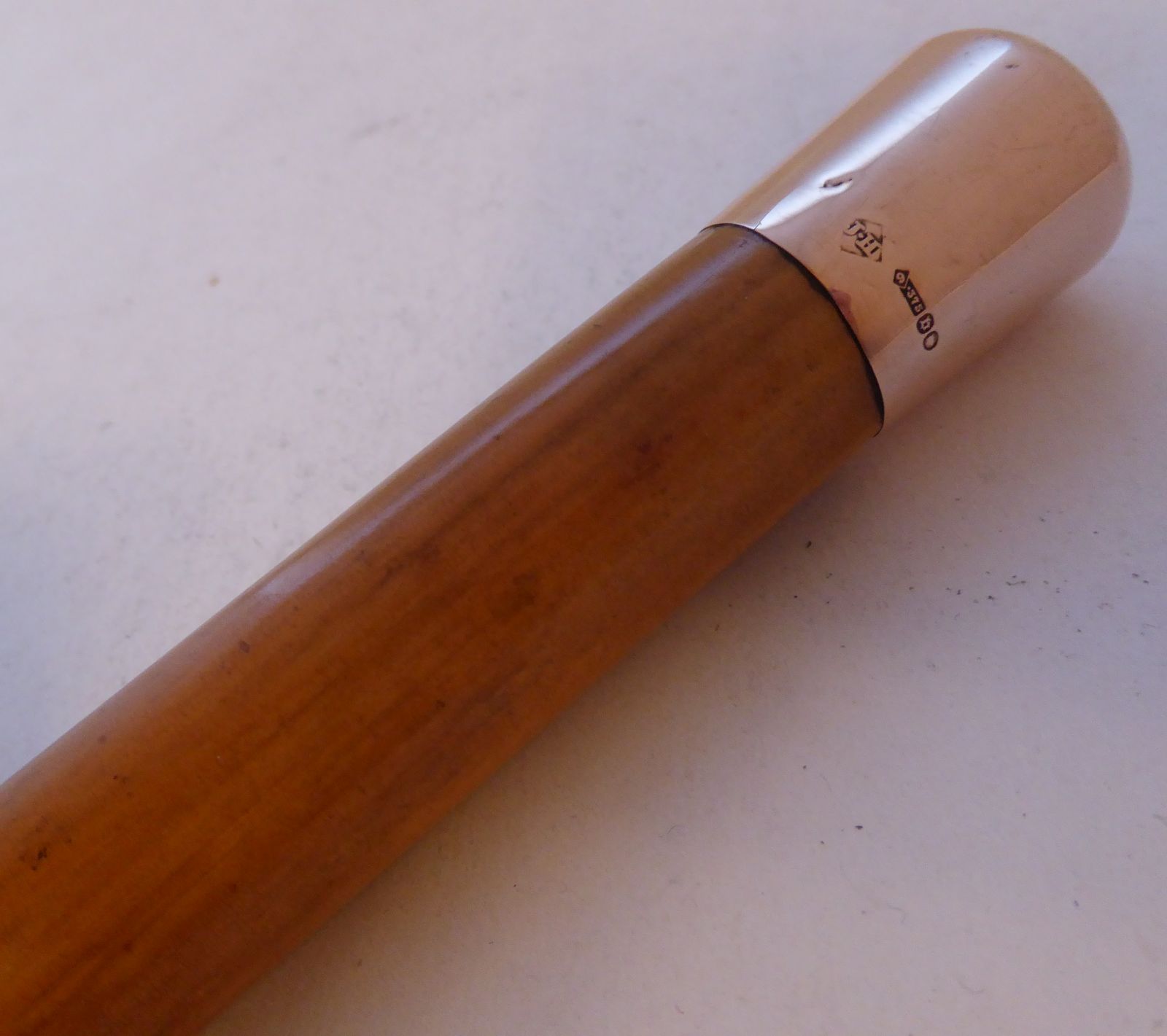 Walking Stick Cane 1917 Hallmarked 9ct Rose Gold Pommel Malacca Wood Shaft