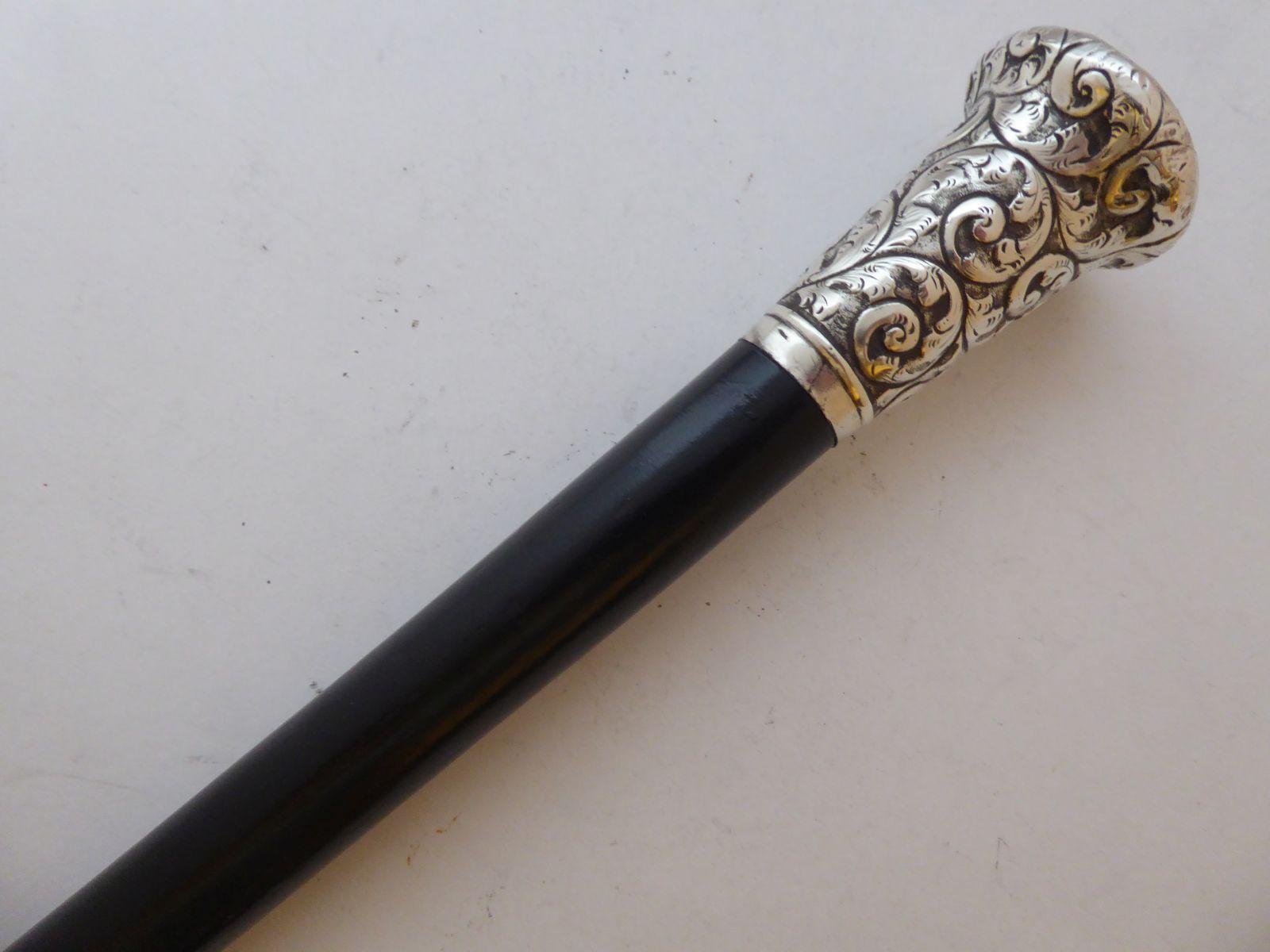 Walking Stick Cane 1917 Large Hallmarked Solid Silver Pommel Ebonised Shaft