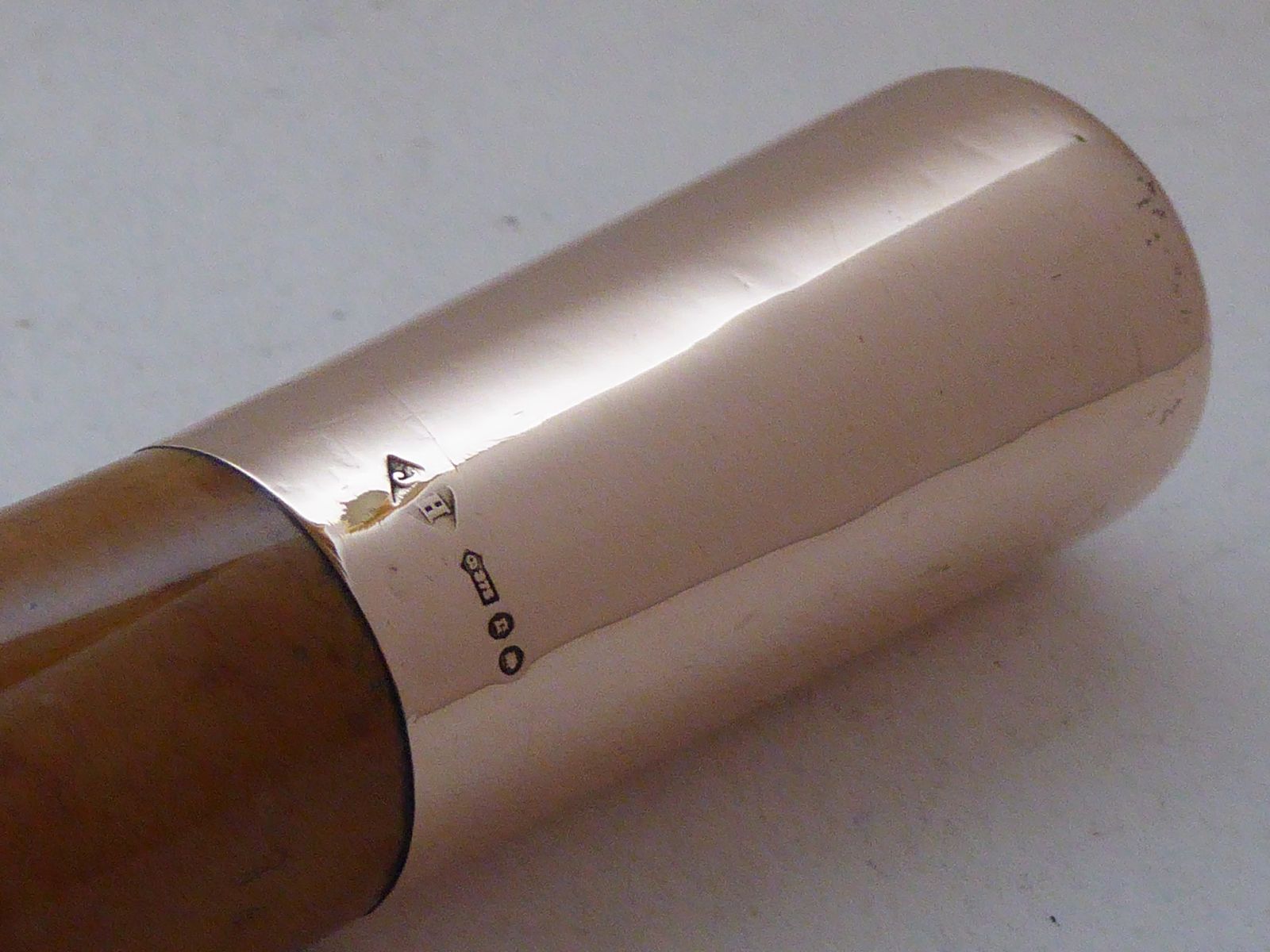 Walking Stick Cane 1918 Hallmarked 9ct Rose Gold Pommel Malacca Shaft