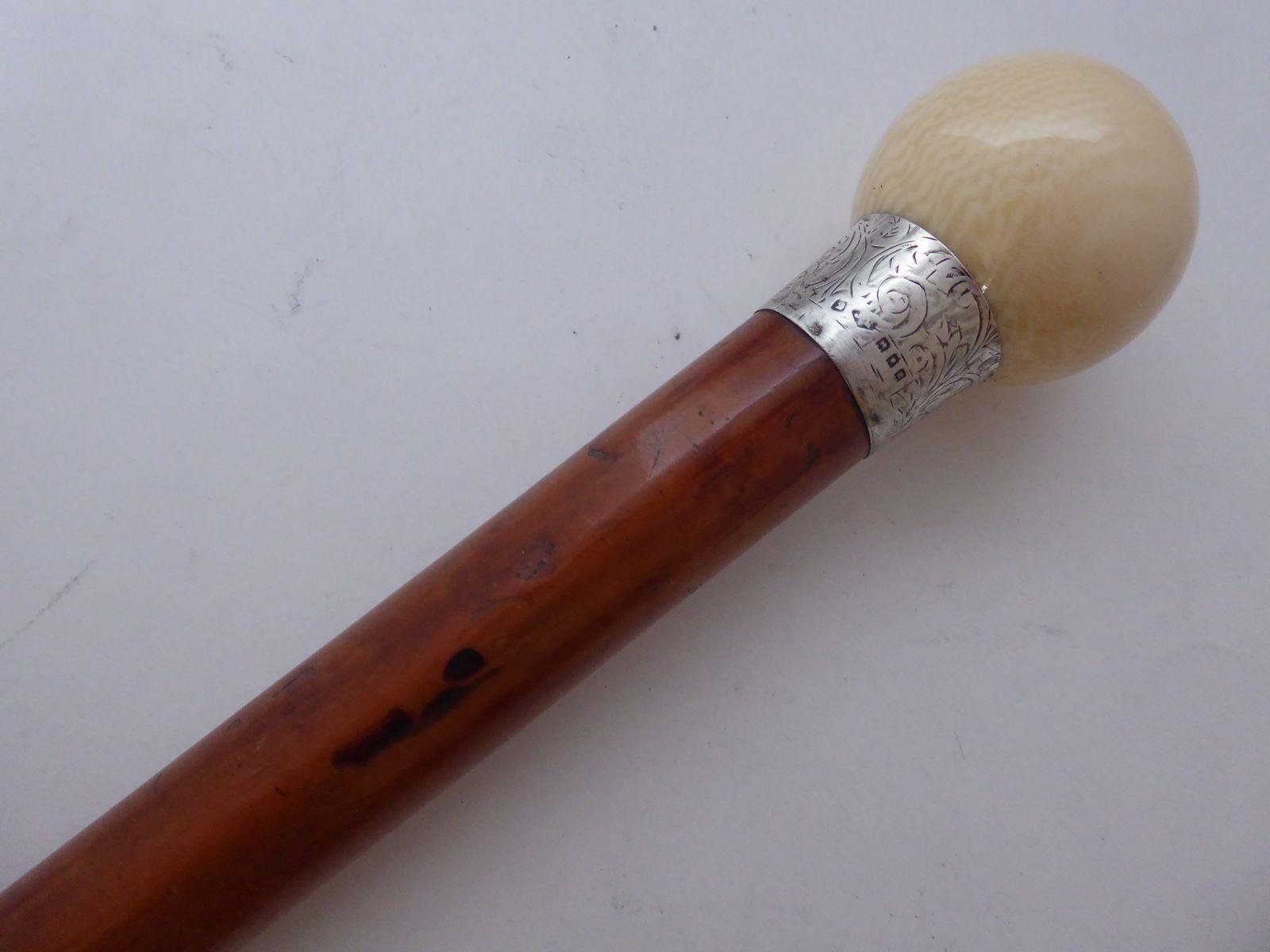 Walking Stick Cane 1918 Hallmarked Silver Pommel Malacca Shaft Tagua Nut