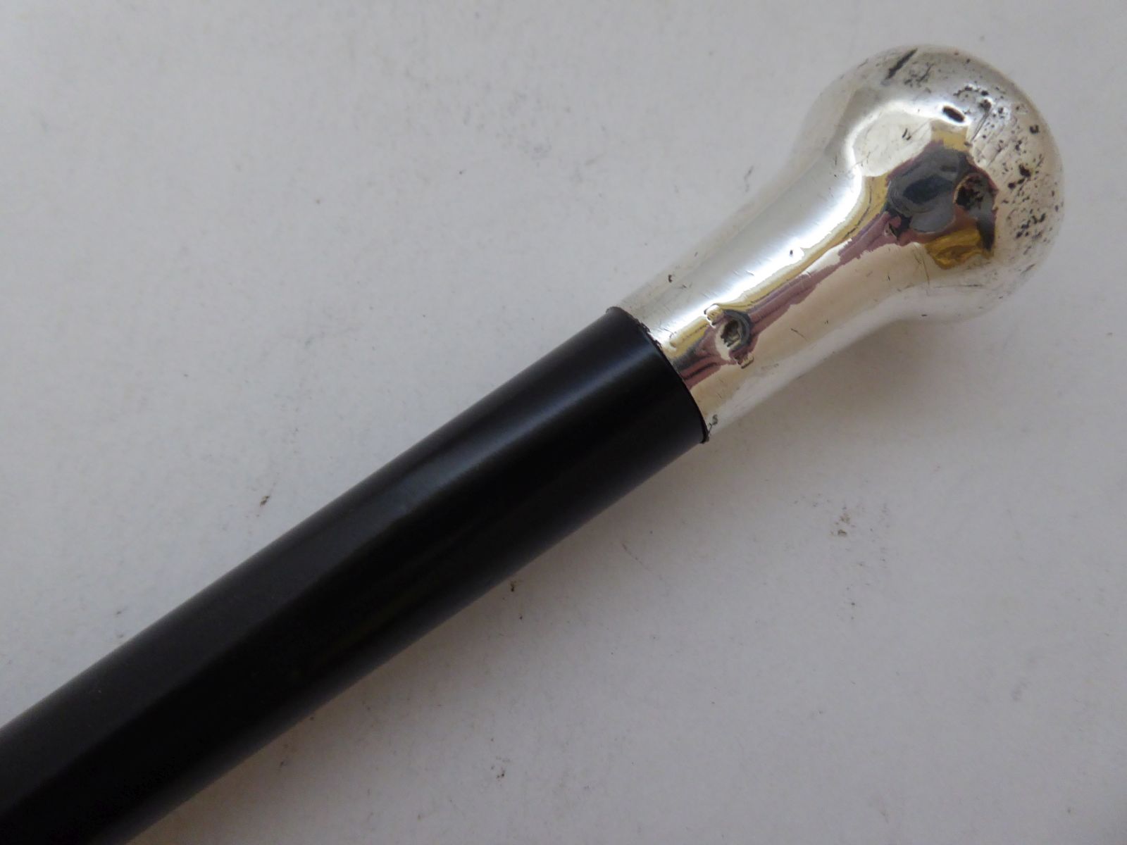 Walking Stick Cane 1918 Hallmarked Solid Silver Pommel Ebony Wood Shaft