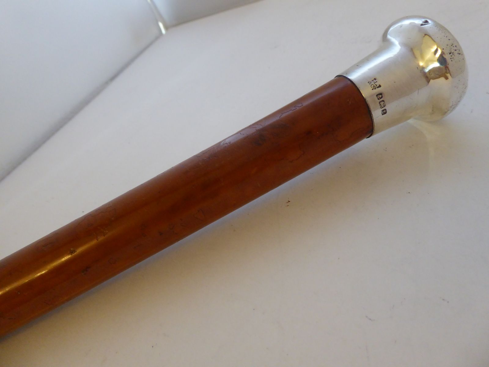 Walking Stick Cane 1918 Hallmarked Solid Silver Pommel Malacca Shaft