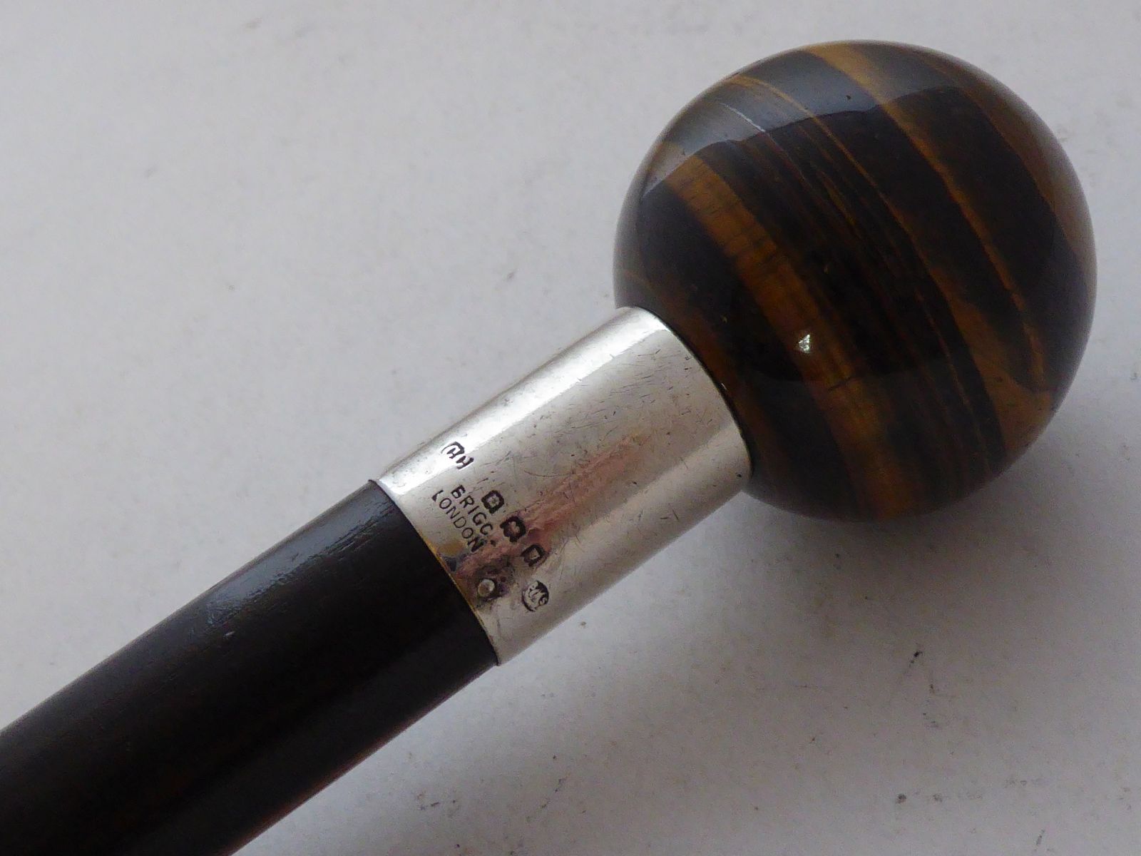 Walking Stick Cane 1918 Solid Silver Pommel Coromandel Wood Shaft Brigg of London