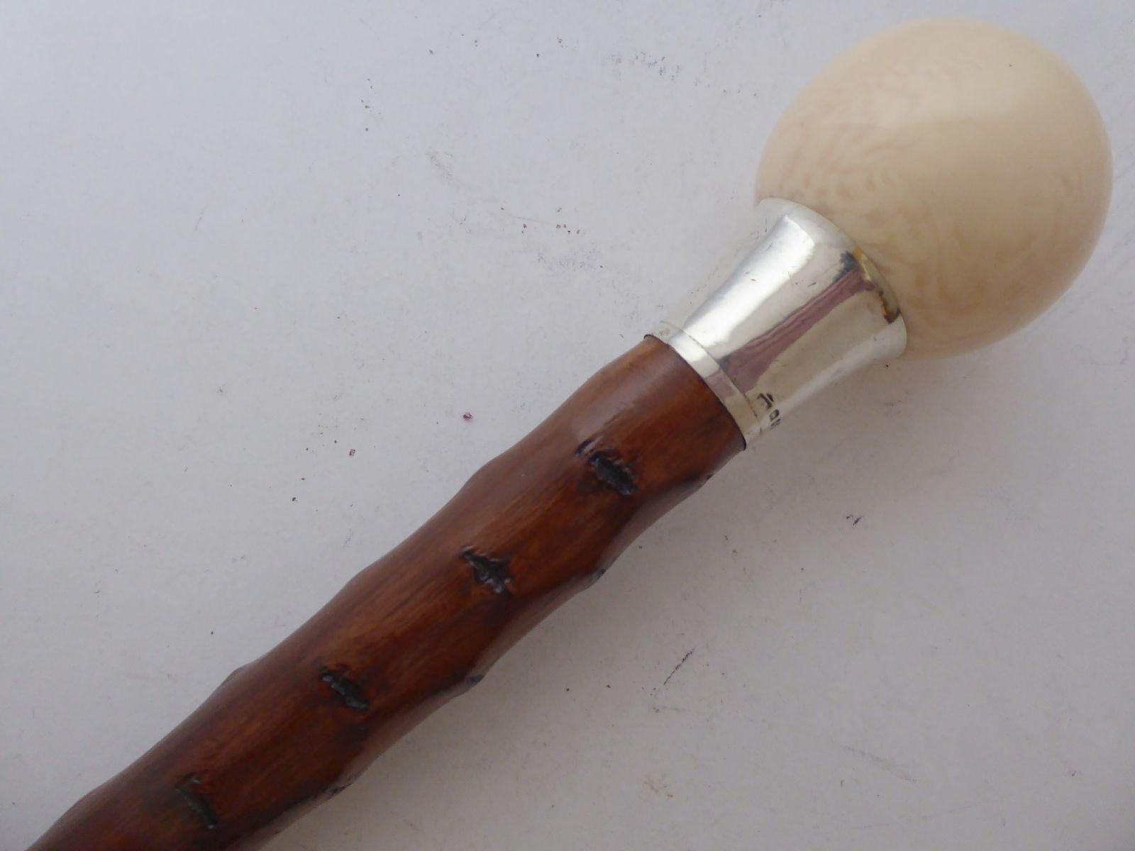 Walking Stick Cane 1919 Hallmarked Silver Collar Blackthorn Wood Shaft Tagua Nut Top