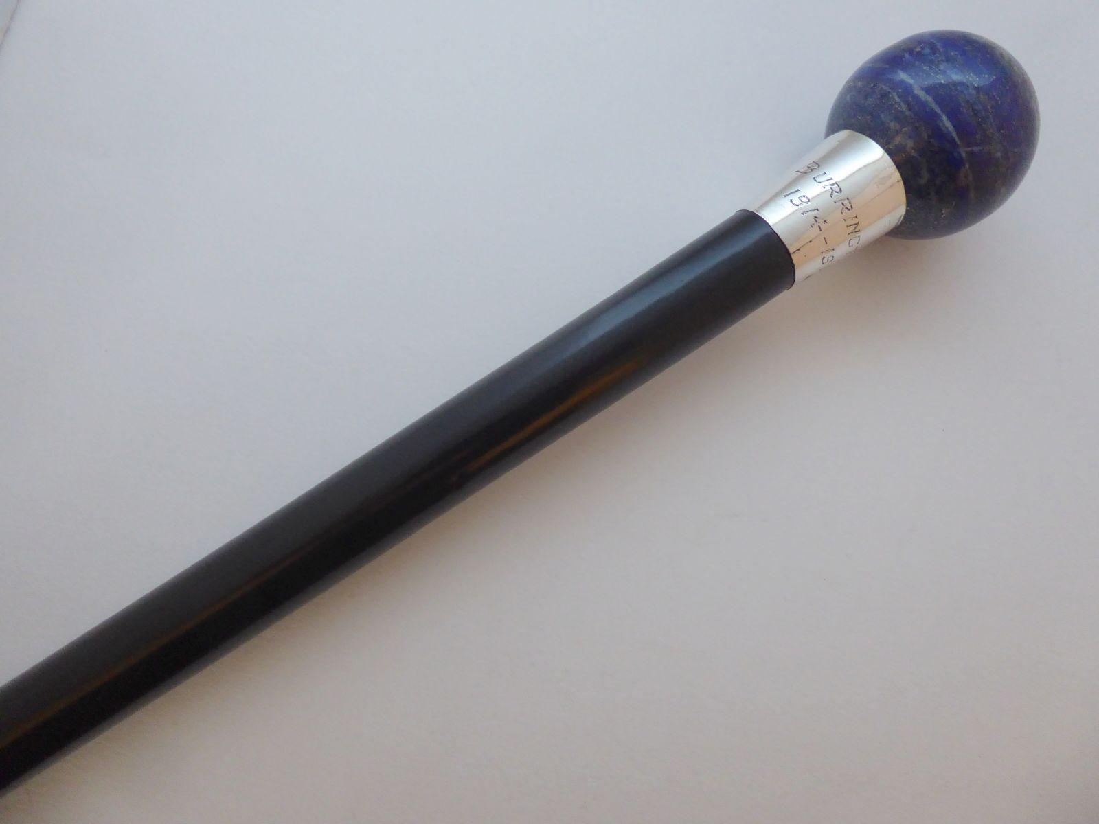 Walking Stick Cane 1919 Hallmarked Silver Collar Ebony Shaft Lapis Lazuli Top