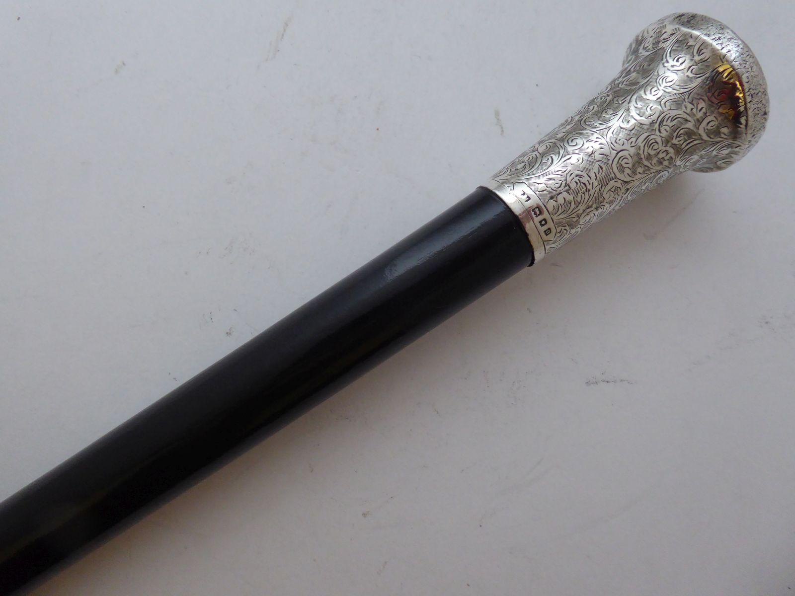 Walking Stick Cane 1919 Hallmarked Solid Silver Pommel Ebonised Wood Shaft