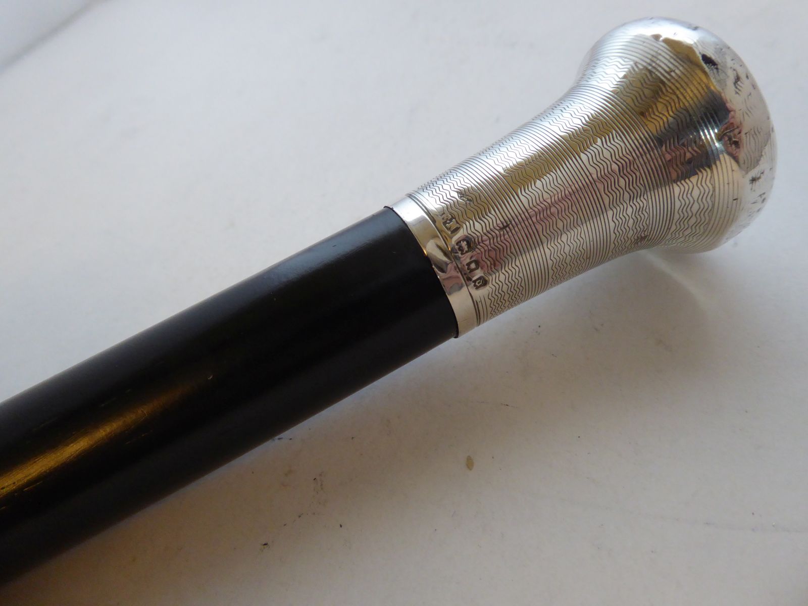 Walking Stick Cane 1919 Hallmarked Solid Silver Pommel Ebony Wood Shaft