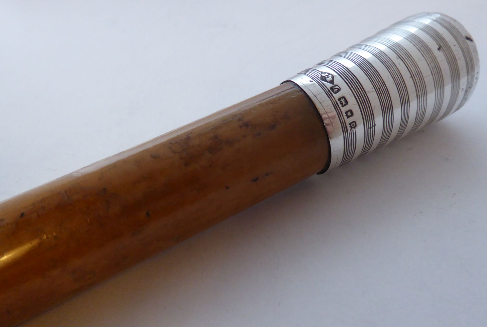 Walking Stick Cane 1919 Hallmarked Solid Silver Pommel Malacca Wood Shaft