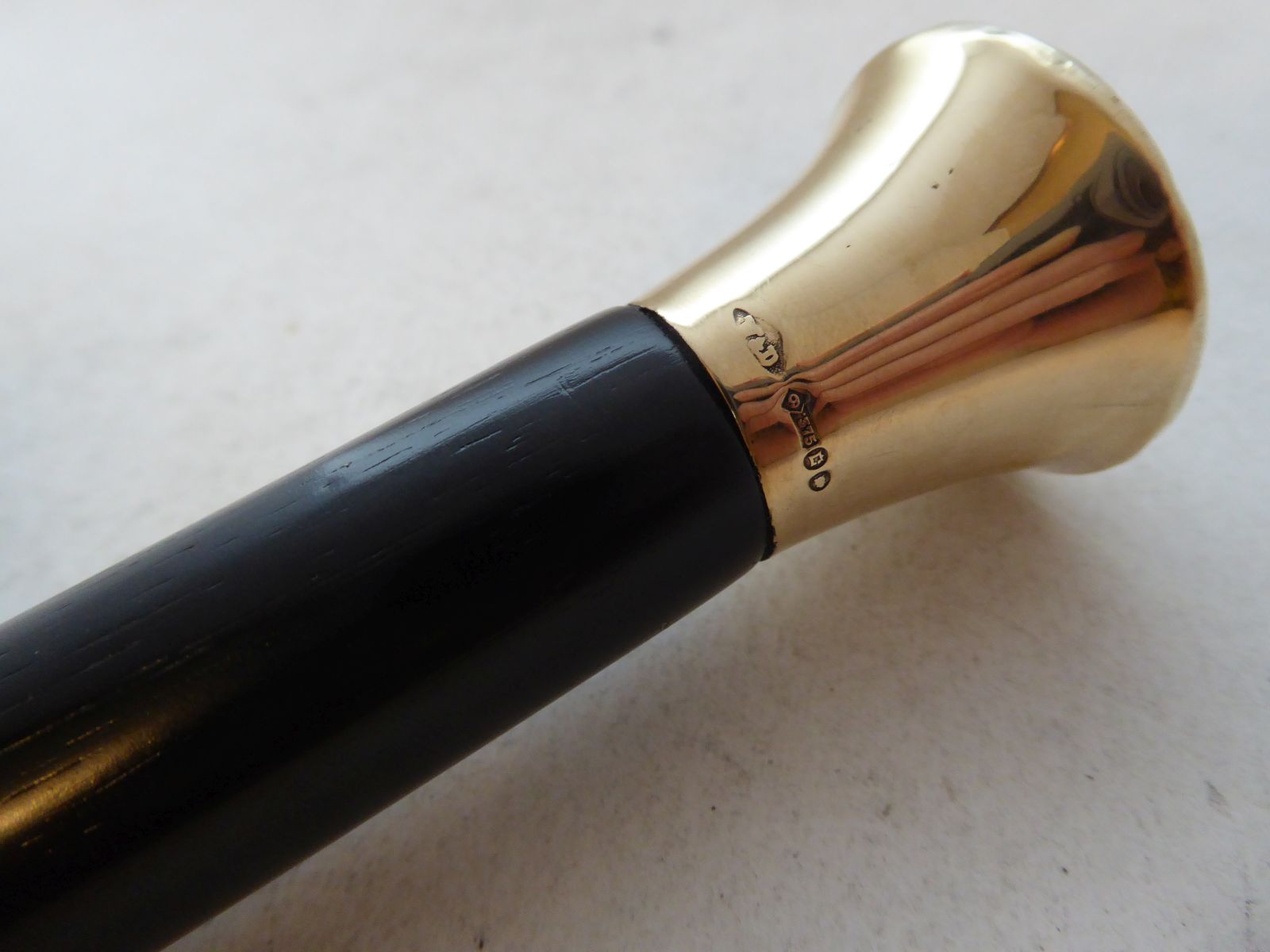 Walking Stick Cane 1920 Hallmarked 9ct Gold Pommel Ebony Shaft Not Silver